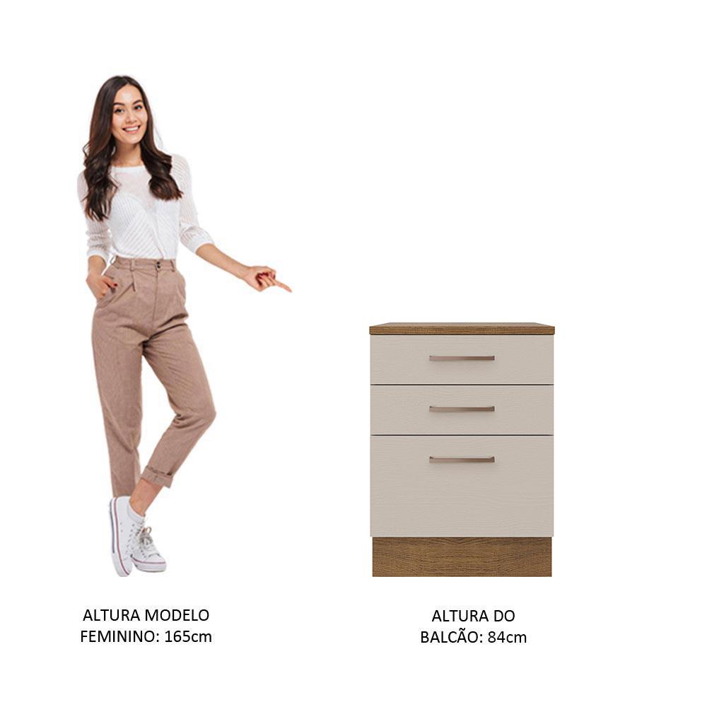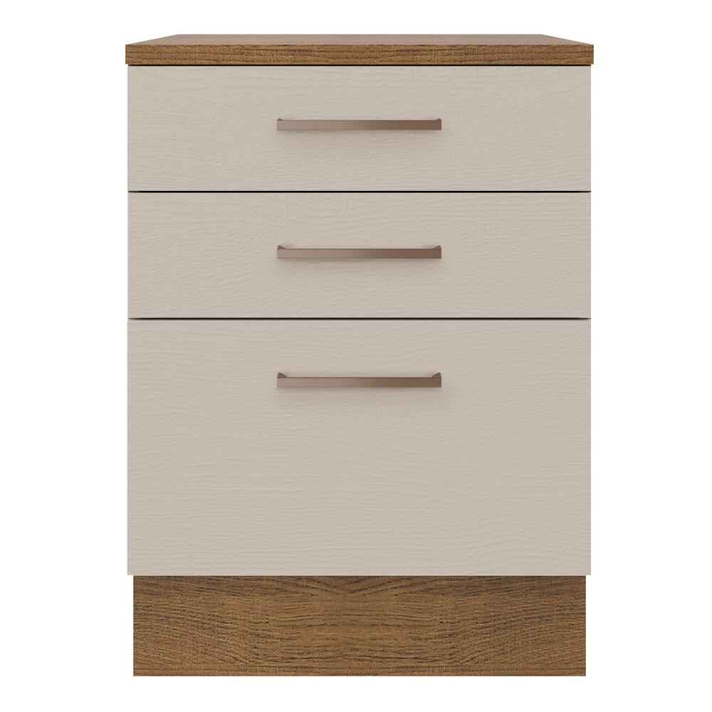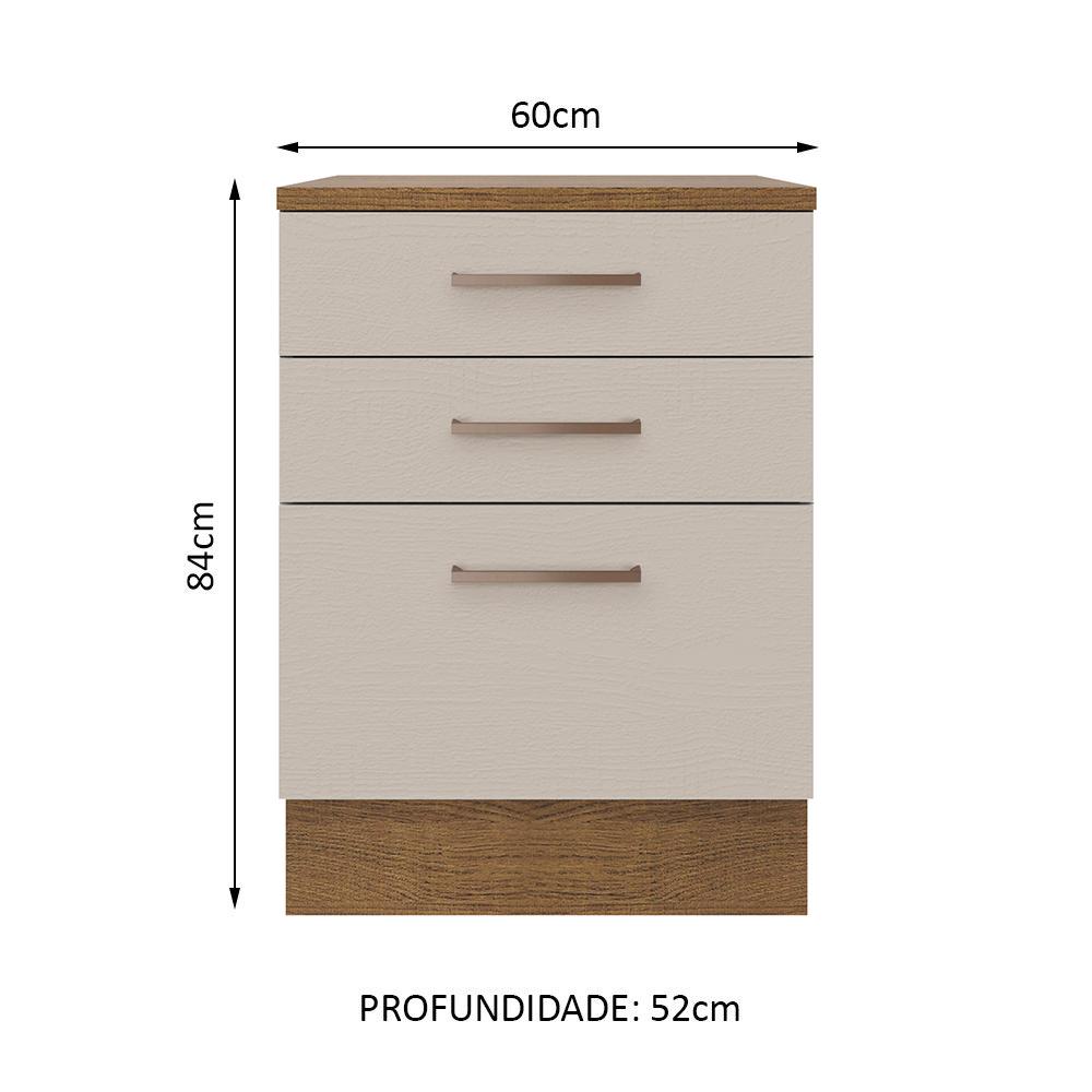 Balcão Armário de Cozinha 60 cm 3 Gavetas Rustic/Crema Agata Madesa