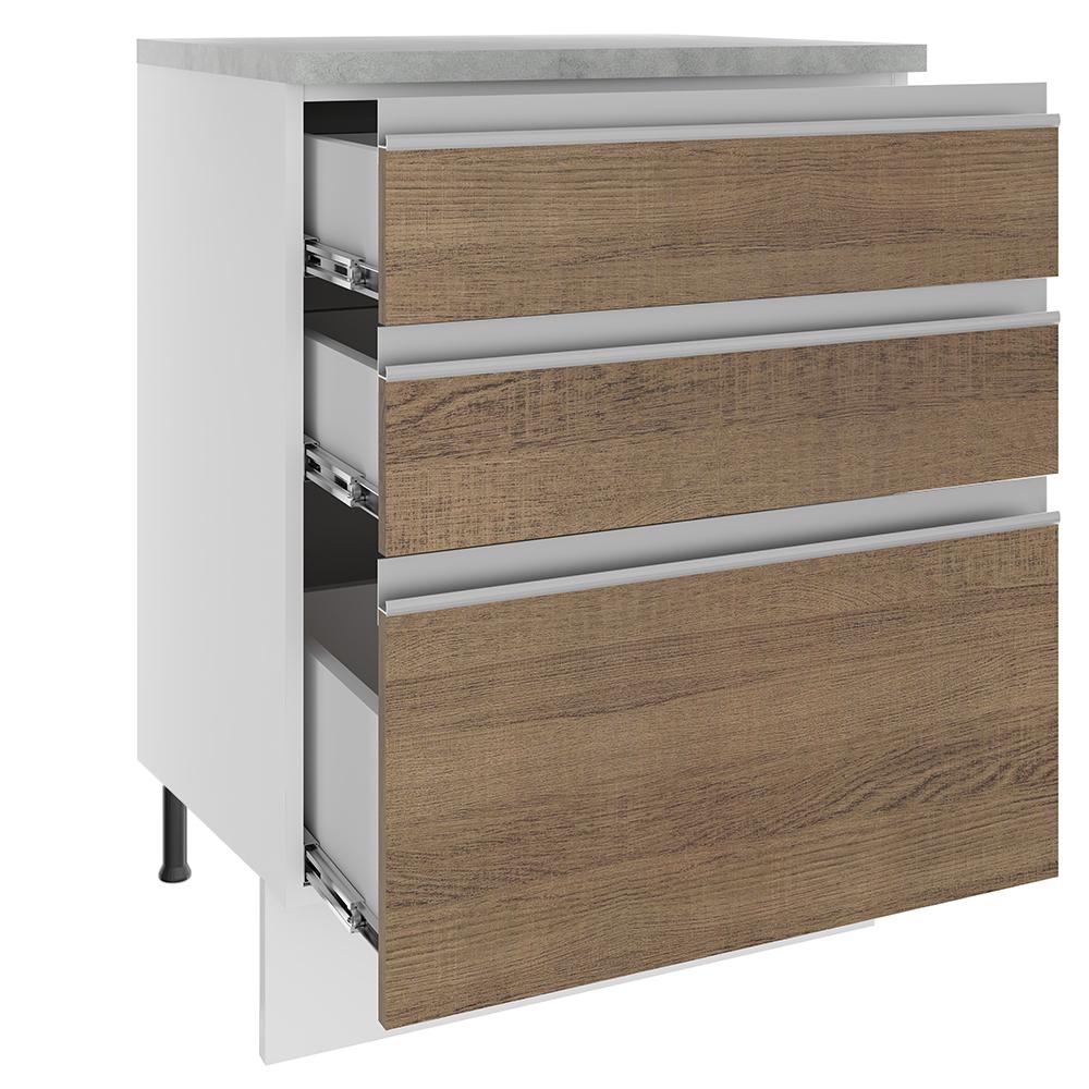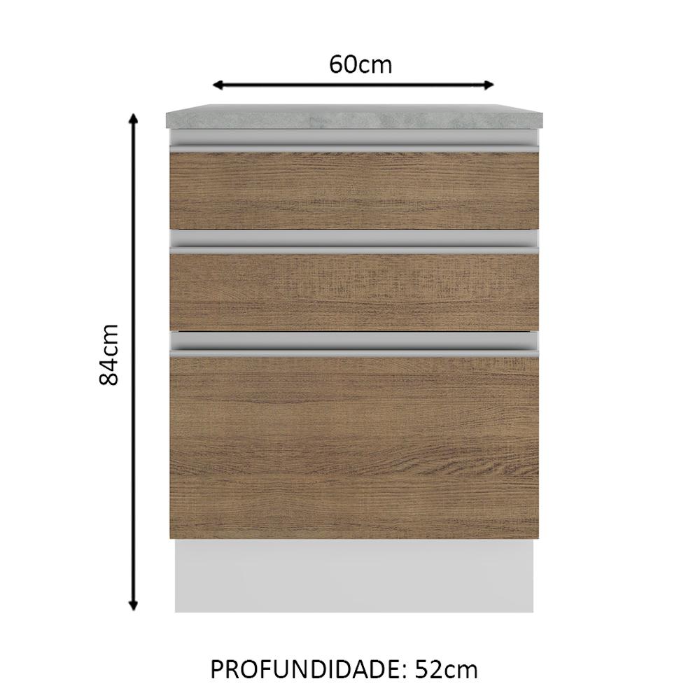Balcão Armário de Cozinha 60 cm 3 Gavetas Branco/Rustic Glamy Madesa