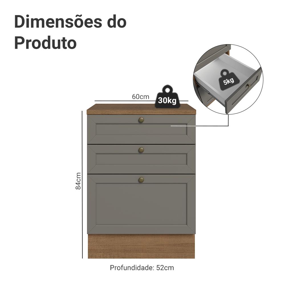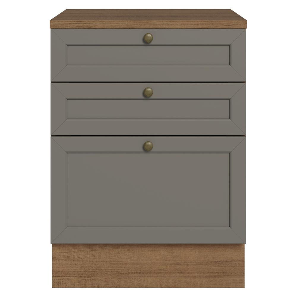 Balcão de Cozinha 60 cm 3 Gavetas Rustic/Cinza Vik Madesa