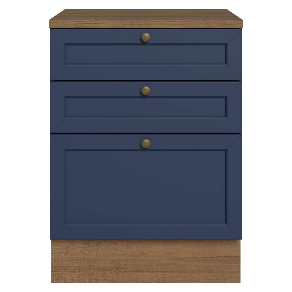 Balcão de Cozinha 60 cm 3 Gavetas Rustic/Azul Vik Madesa