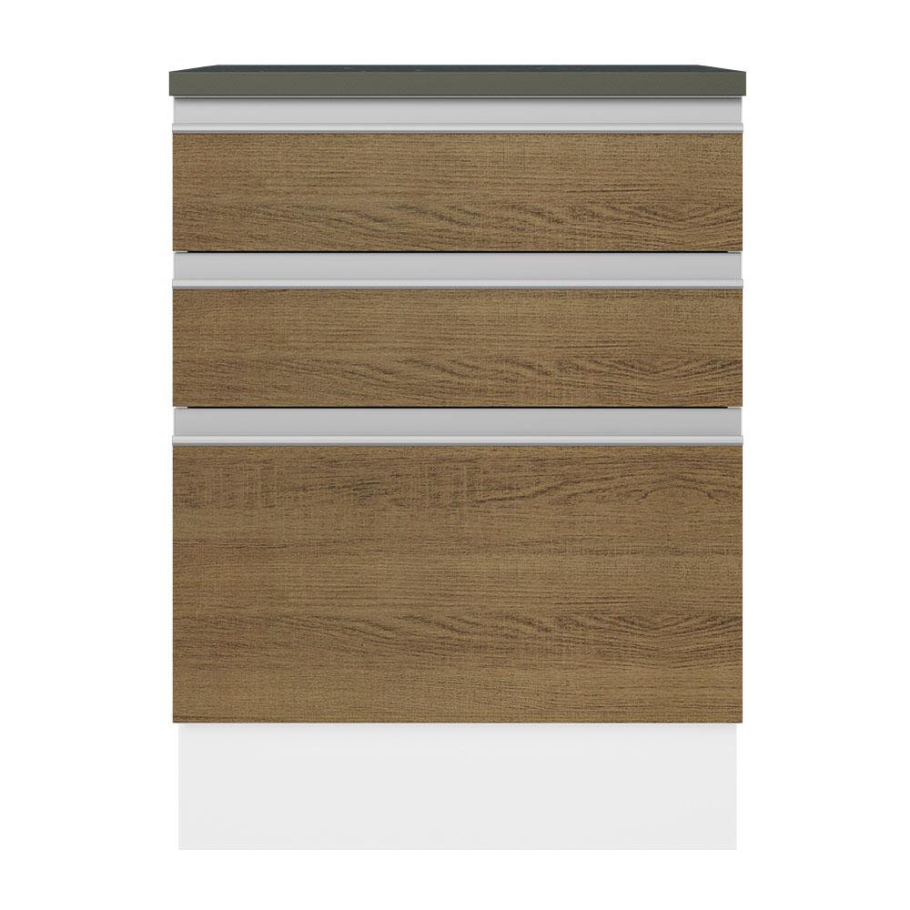 Balcão Armário de Cozinha 100% MDF 60 cm 3 Gavetas Branco/Rustic Acordes Madesa