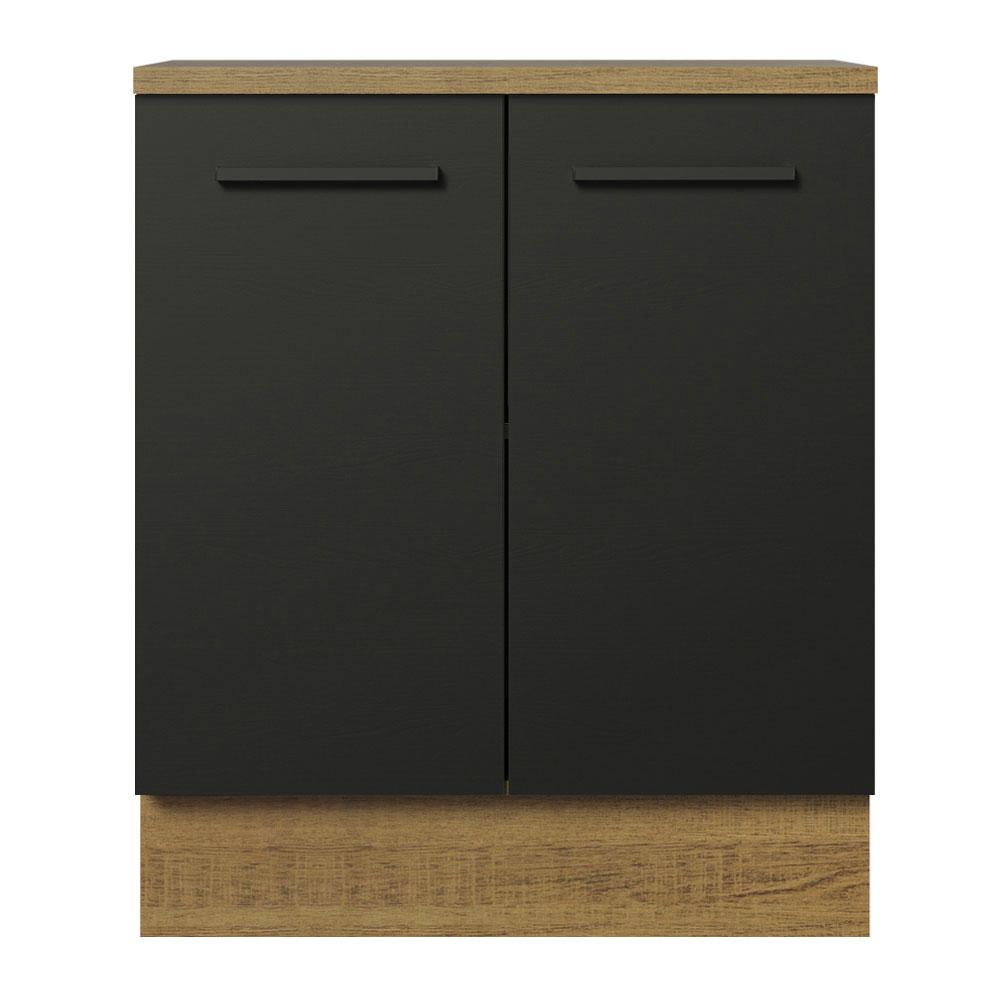 Balcão Armário de Cozinha 70 cm 2 Portas Rustic/Preto Agata Madesa