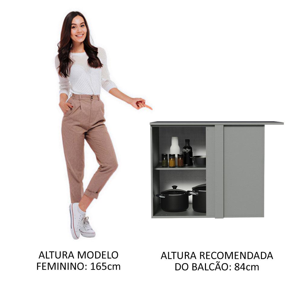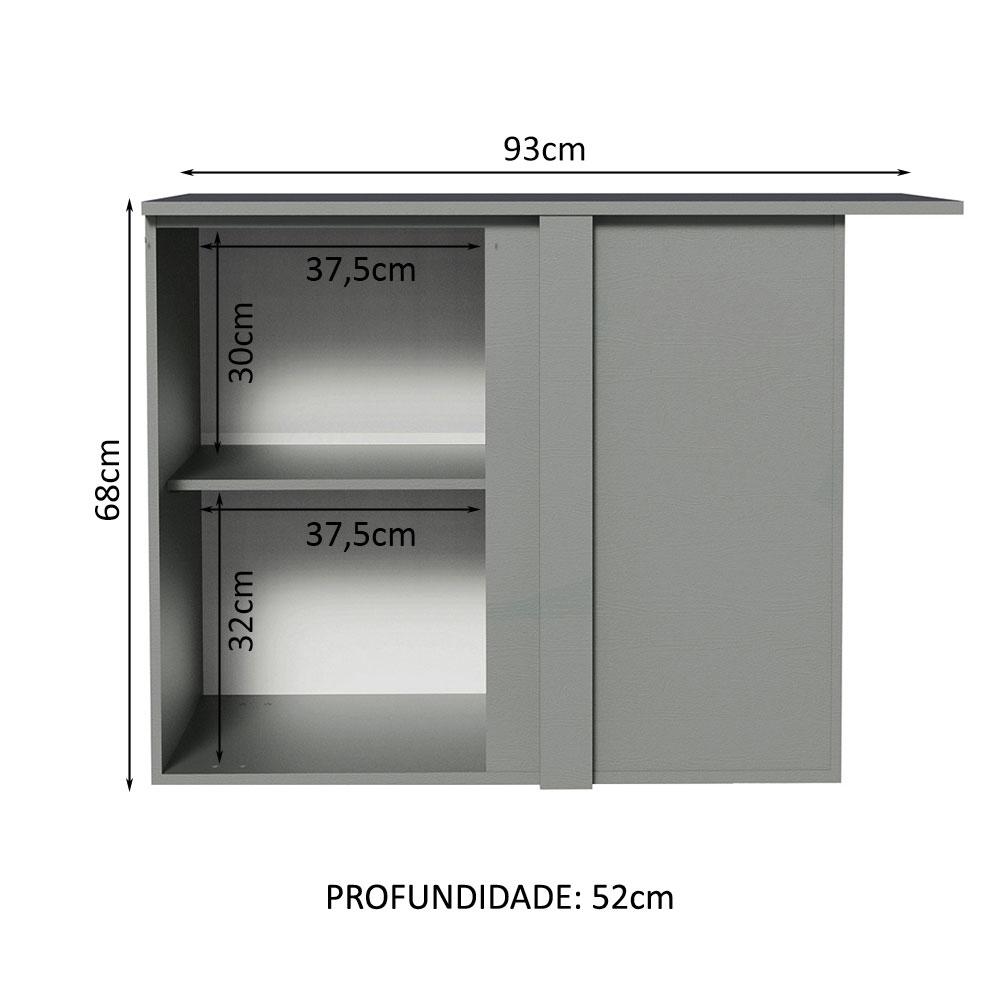 Balcão de Canto Armário de Cozinha 1 Porta Suspenso Cinza Nice Madesa