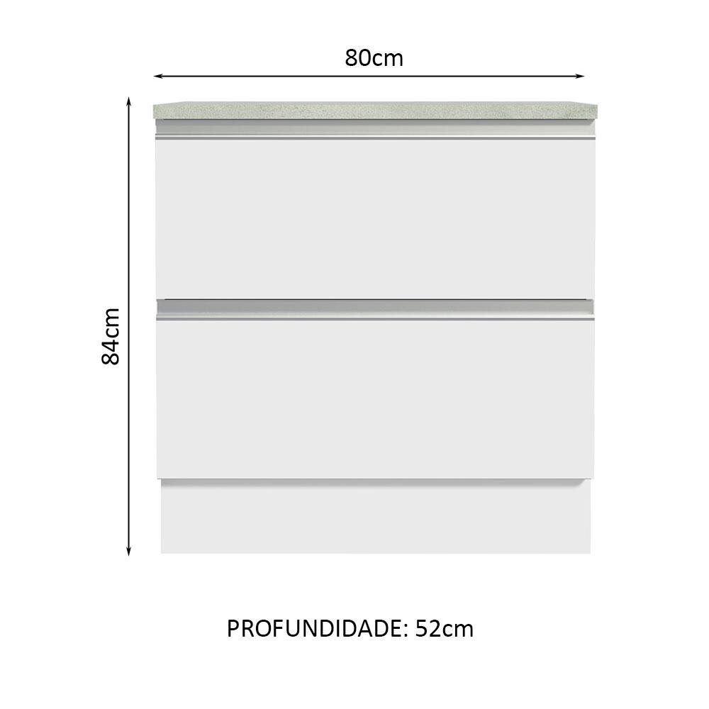 Balcão Armário de Cozinha 80 cm 2 Gavetas Branco Glamy Madesa