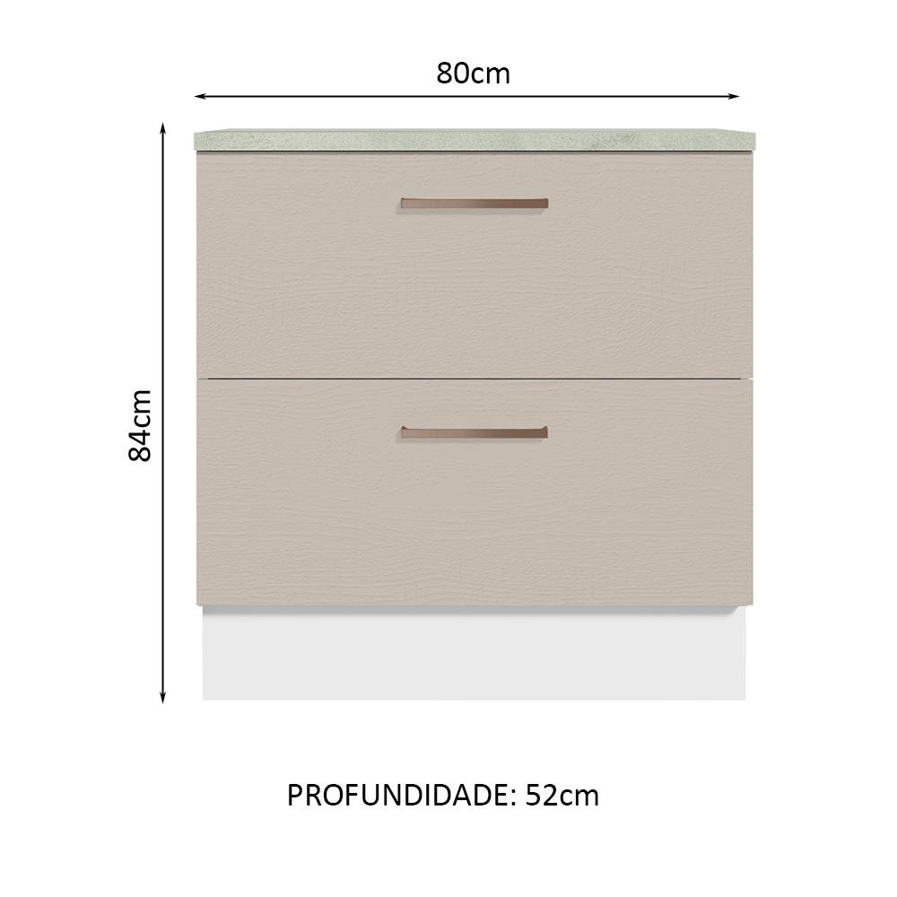 Balcão Armário de Cozinha 80 cm 2 Gavetas Branco/Crema Agata Madesa