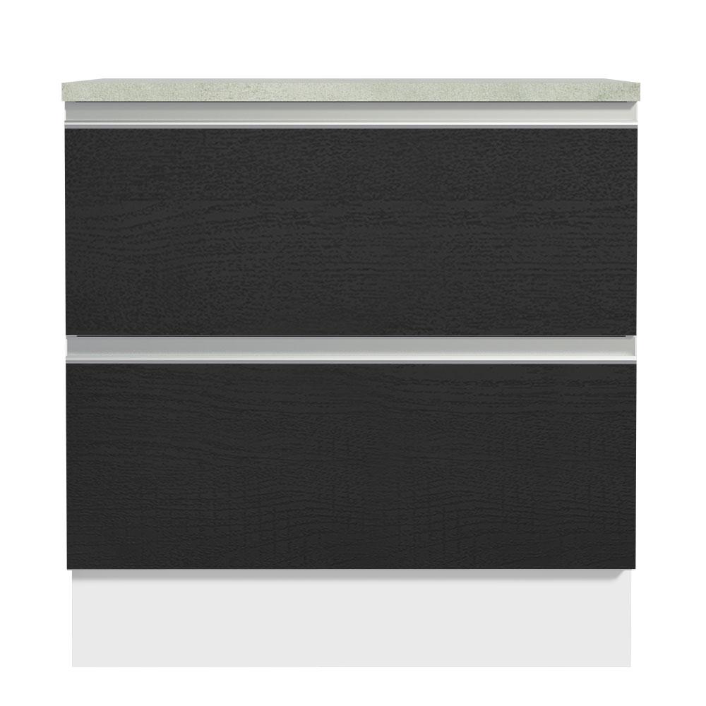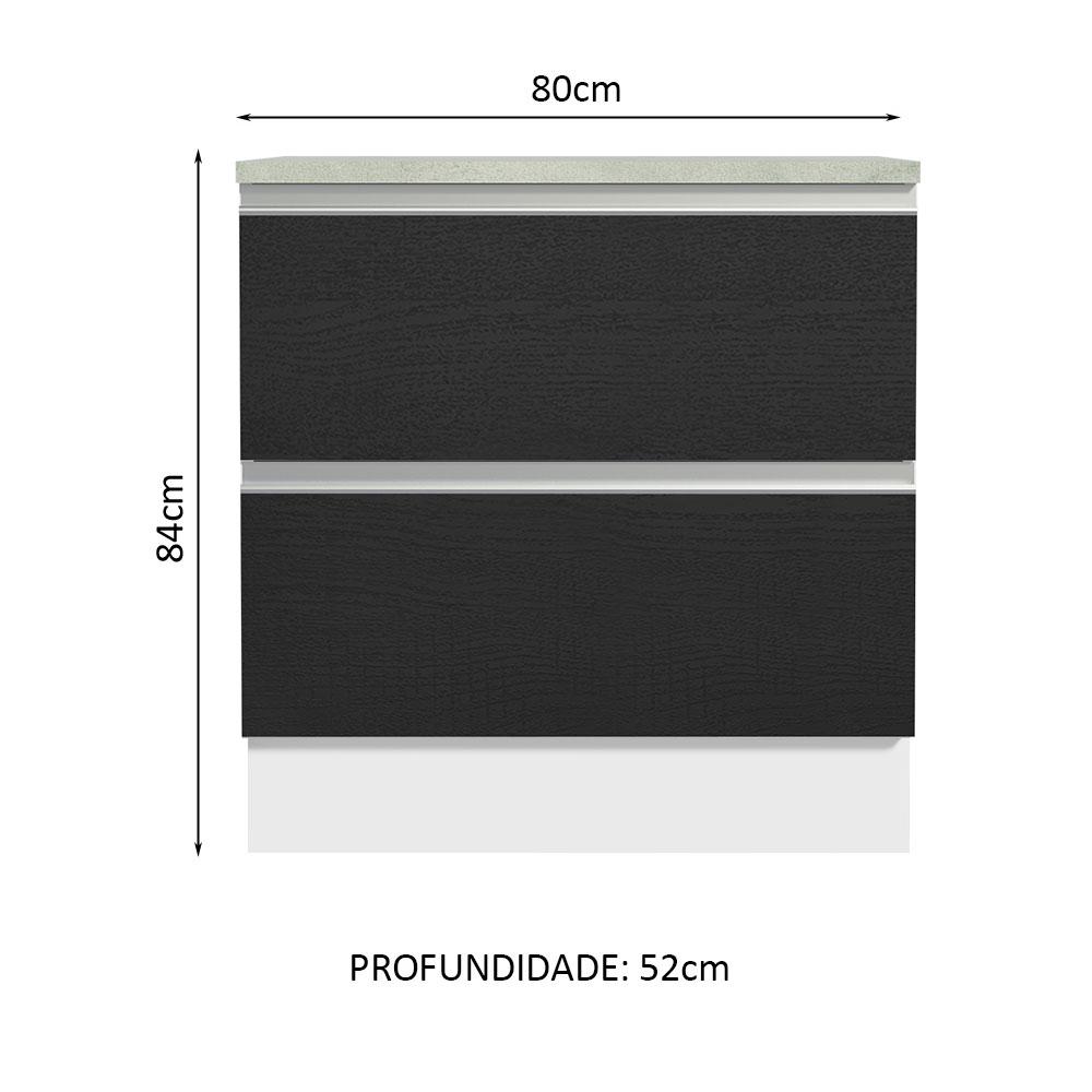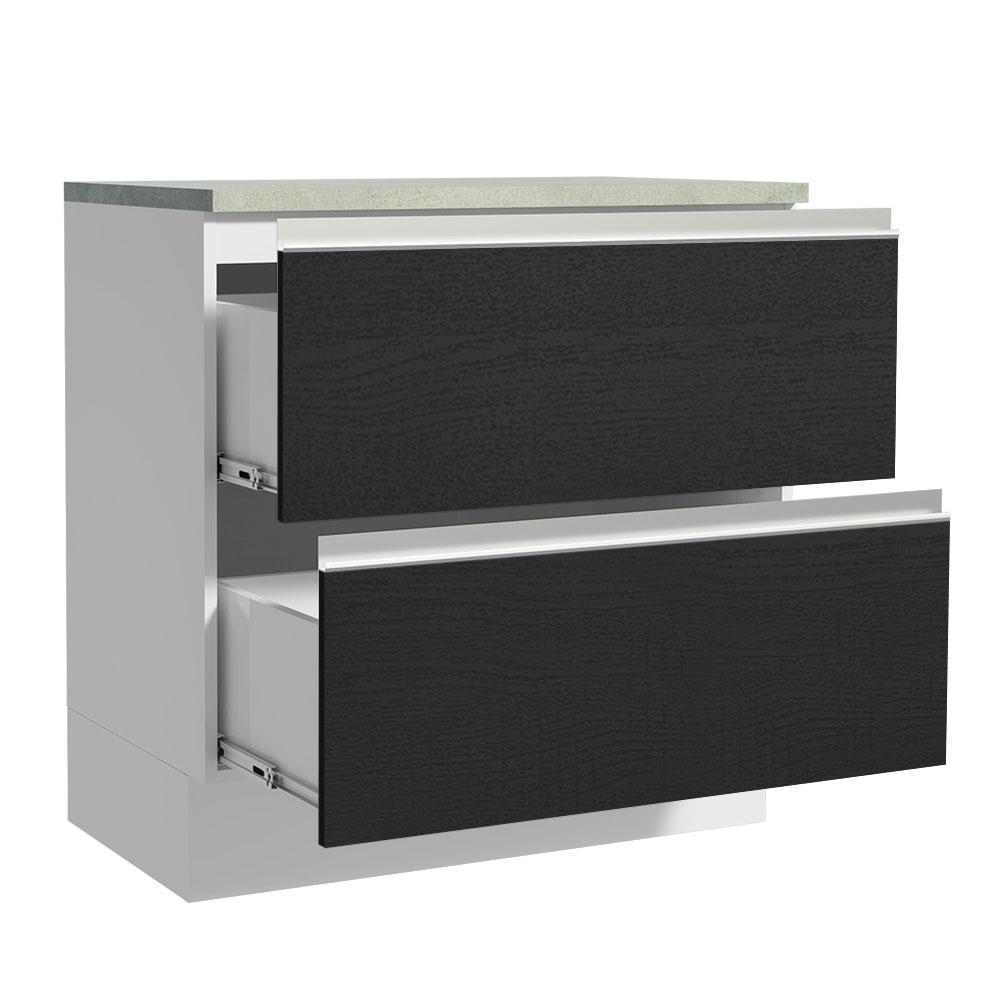 Balcão Armário de Cozinha 80 cm 2 Gavetas Branco/Preto Glamy Madesa