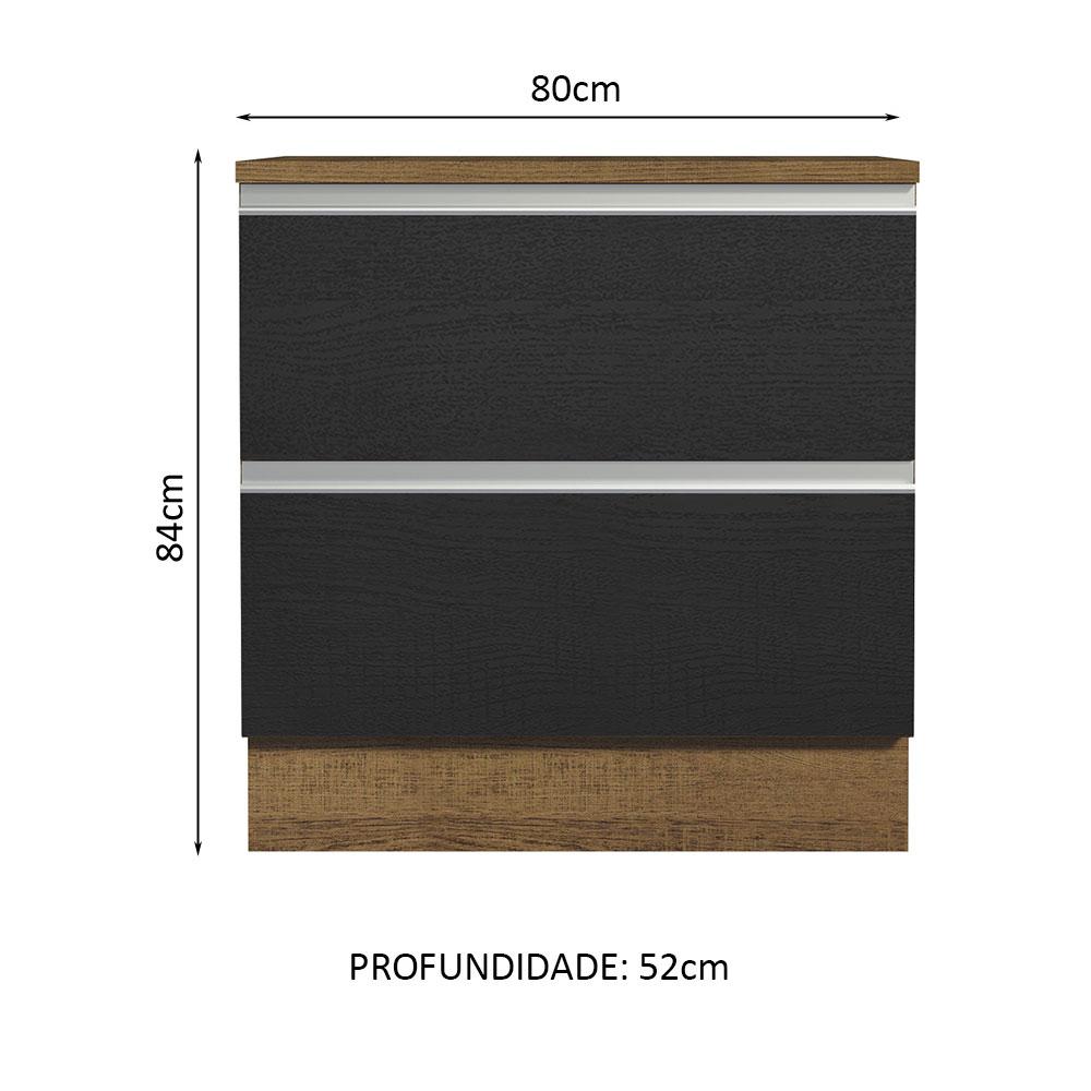 Balcão Armário de Cozinha 80 cm 2 Gavetas Rustic/Preto Glamy Madesa