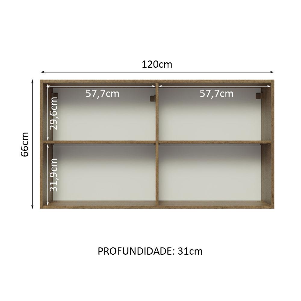 Armário de Cozinha Aéreo 120 cm 2 Portas com Vidro Rustic Glamy Madesa