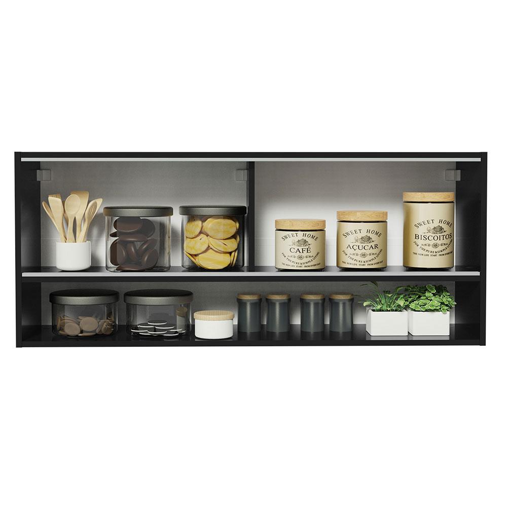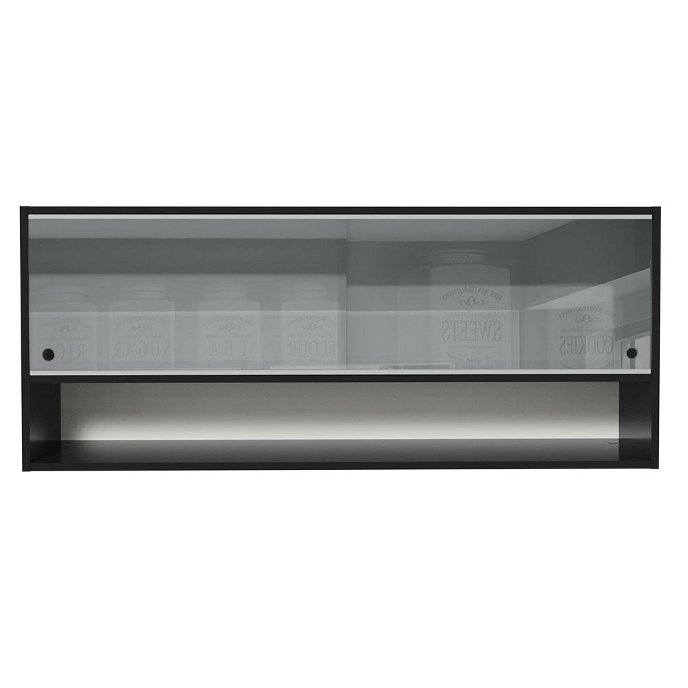 Armário de Cozinha Aéreo 120cm 2 Portas Correr Vidro Neutral 1 Nicho Preto Reims Madesa