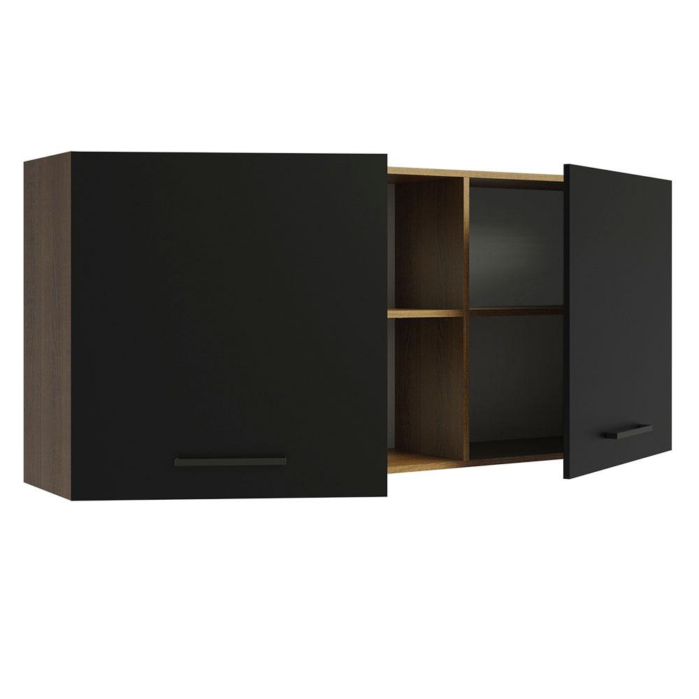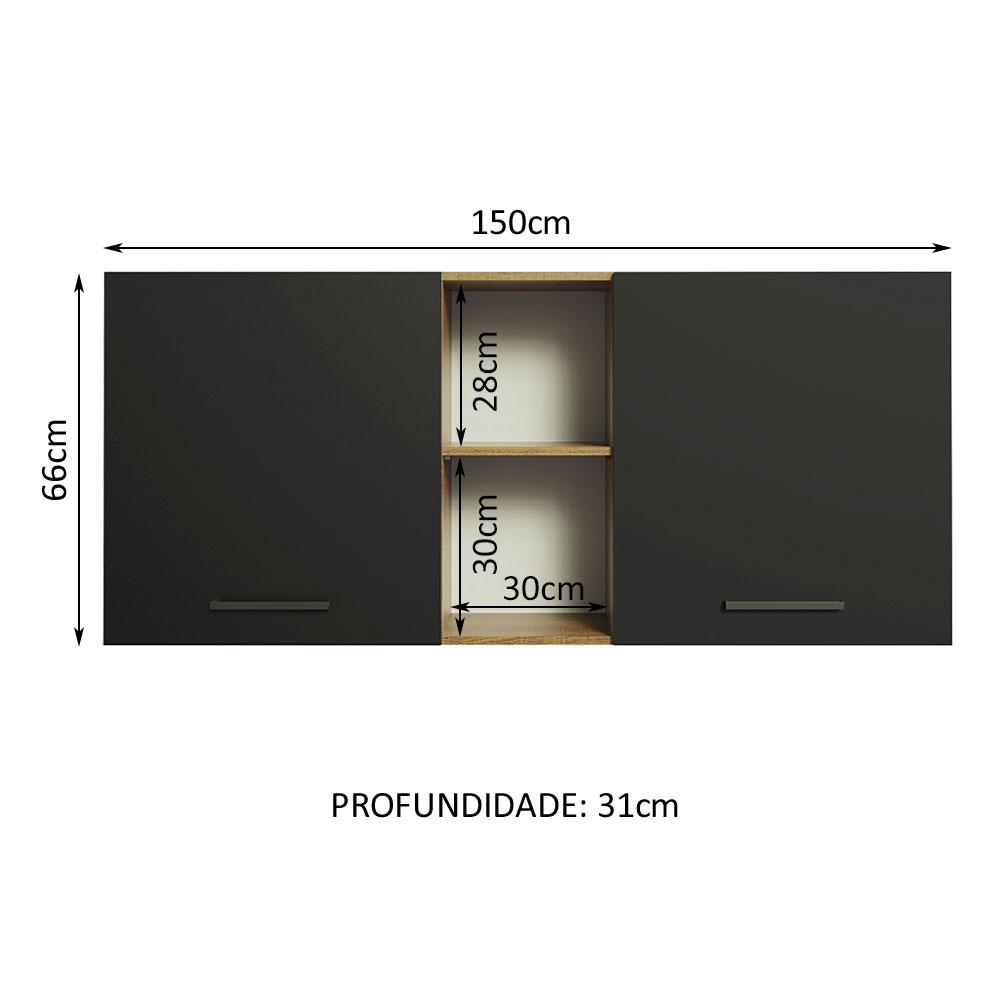 Armário de Cozinha Aéreo 150 cm 2 Portas e 2 Nichos Rustic/Preto Agata Madesa