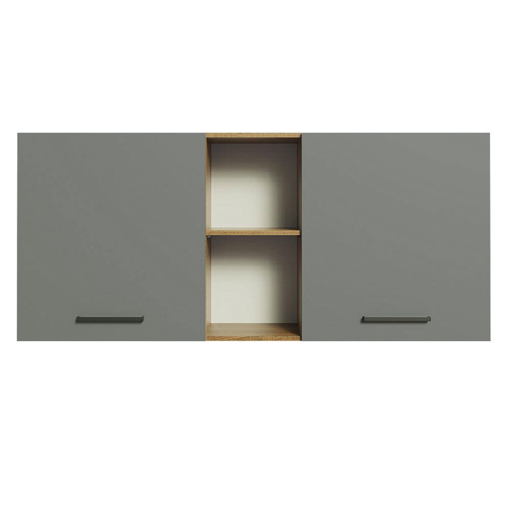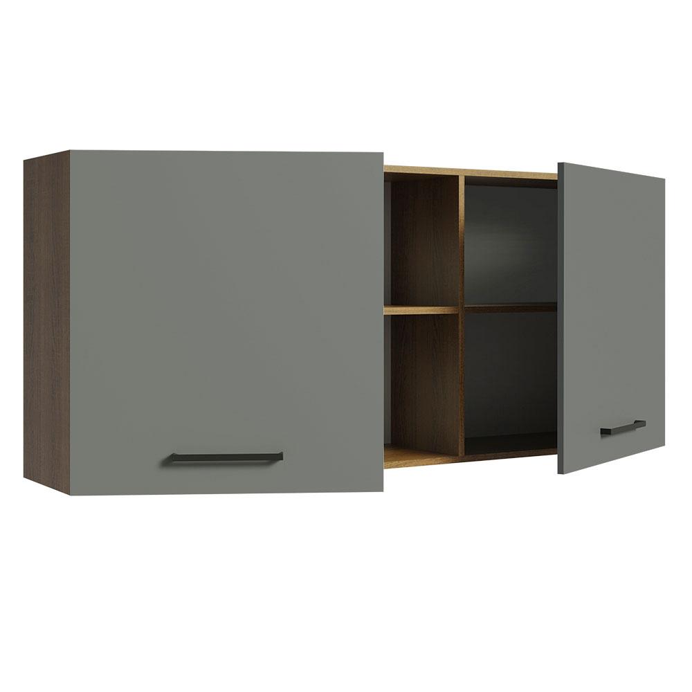 Armário de Cozinha Aéreo 150 cm 2 Portas e 2 Nichos Rustic/Cinza Agata Madesa