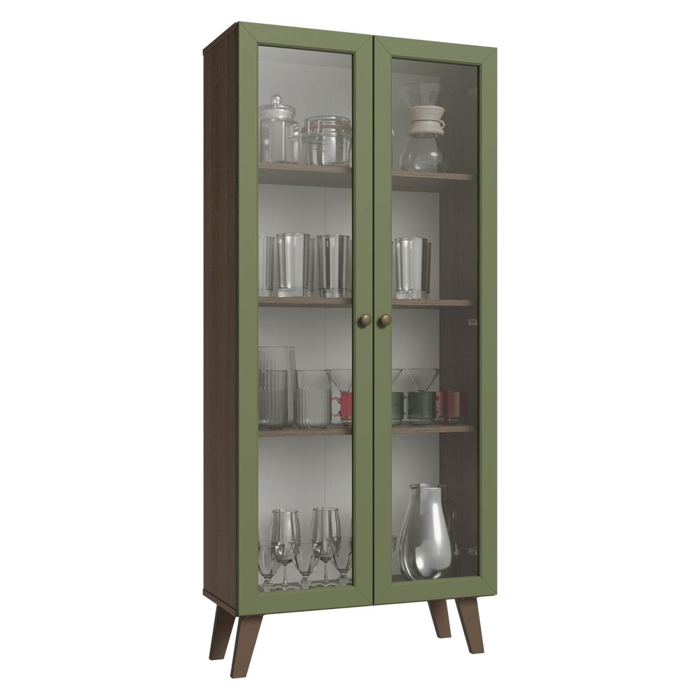 Cristaleira 70 cm 2 Portas de Vidro com Pés Trapézio Rustic/Verde/Rustic Vik Madesa