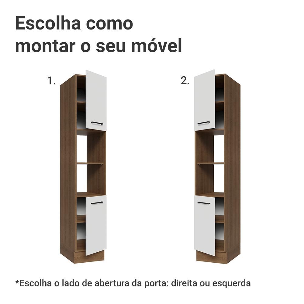 O Paneleiro de 40cm da linha Agata, com duas portas e dois nichos, proporciona praticidade e organização, deixando sua cozinha ainda mais funcional.A estrutura no tom amadeirado Rustic traz aconchego ao ambiente, enquanto a porta branca transmite leveza. Os puxadores pretos completam o design com um contraste moderno. O formato em alça garante mais praticidade.As portas possuem dobradiças com amortecimento, que proporcionam fechamento suave e silencioso. Os pés possuem regulagem de altura e o rodapé removível facilita a limpeza.Medidas totais:- 225 cm de altura- 40 cm de largura- 52 cm de profundidadeInformações técnicas:- Material: MDP- Peso suportado: 95kg- Altura dos pés: reguláveis de 15cm a 20cmO que você recebe:- Um Paneleiro com duas portas e dois nichosCódigo do produto: G264006EAGÉ importante saber:- Imagens meramente ilustrativas, a decoração não acompanha o produto- A Madesa não disponibiliza serviço de montagem- O produto segue com manual de instalação e todas as ferragens necessárias para sua montagemA Madesa possui compromisso com a sustentabilidade. Geramos energia limpa em nossa própria usina, priorizamos fornecedores responsáveis e utilizamos plástico reciclado em nossa produção. Além disso, reinserimos sobras no ciclo de reciclagem e investimos no desenvolvimento de nossos colaboradores e da comunidade.Garantia: Este produto conta com 1 ano de garantia total, sendo 3 meses de garantia legal e 9 meses de garantia contratual. A garantia cobre exclusivamente defeitos de fabricação e vícios ocultos. Não estão cobertos: problemas decorrentes de montagem incorreta, uso inadequado, exposição à umidade, calor ou luz solar direta, modificações no produto ou desgaste natural.