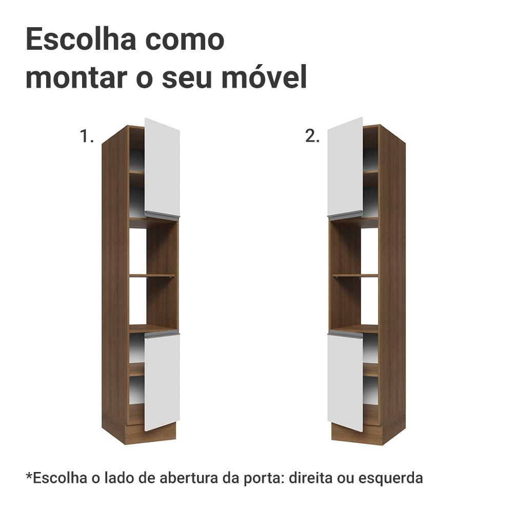 O Paneleiro de 40 cm da linha Glamy é a solução ideal para quem busca organização, com duas portas e dois nichos centrais, ele aproveita cada centímetro de altura para acomodar mantimentos, utensílios e tudo o que você precisa ter sempre à mão na cozinha.A estrutura é no tom amadeirado Rustic e a porta em Branco, trazendo um toque elegante ao ambiente. O puxador cinza em perfil de alumínio, no estilo cava, é um dos destaques: moderno, minimalista e muito prático no dia a dia.As portas possuem dobradiças com amortecimento, que proporcionam fechamento suave e silencioso. Os pés possuem regulagem de altura e o rodapé removível facilita a limpeza.Medidas totais:- 225 cm de altura- 40 cm de largura- 52 cm de profundidadeInformações técnicas:- Material: MDP- Peso suportado: 95kg- Altura dos pés: reguláveis de 15cm a 20cmO que você recebe:- Um Paneleiro com duas portas e dois nichosCódigo do produto: G264006EGLÉ importante saber:- Imagens meramente ilustrativas, a decoração não acompanha o produto- A Madesa não disponibiliza serviço de montagem- O produto segue com manual de instalação e todas as ferragens necessárias para sua montagemA Madesa possui compromisso com a sustentabilidade. Geramos energia limpa em nossa própria usina, priorizamos fornecedores responsáveis e utilizamos plástico reciclado em nossa produção. Além disso, reinserimos sobras no ciclo de reciclagem e investimos no desenvolvimento de nossos colaboradores e da comunidade.Garantia: Este produto conta com 1 ano de garantia total, sendo 3 meses de garantia legal e 9 meses de garantia contratual. A garantia cobre exclusivamente defeitos de fabricação e vícios ocultos. Não estão cobertos: problemas decorrentes de montagem incorreta, uso inadequado, exposição à umidade, calor ou luz solar direta, modificações no produto ou desgaste natural.