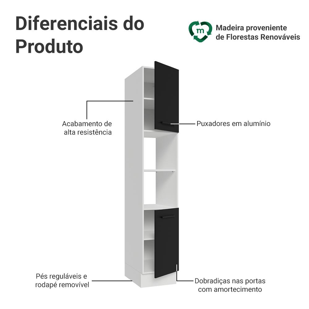 Paneleiro 40cm 2 Portas e 2 Nichos Branco/Preto Agata Madesa