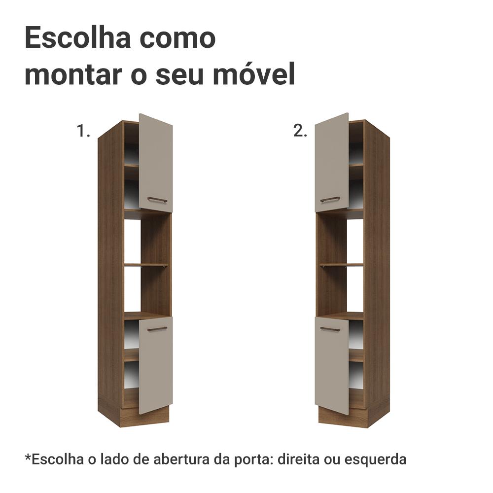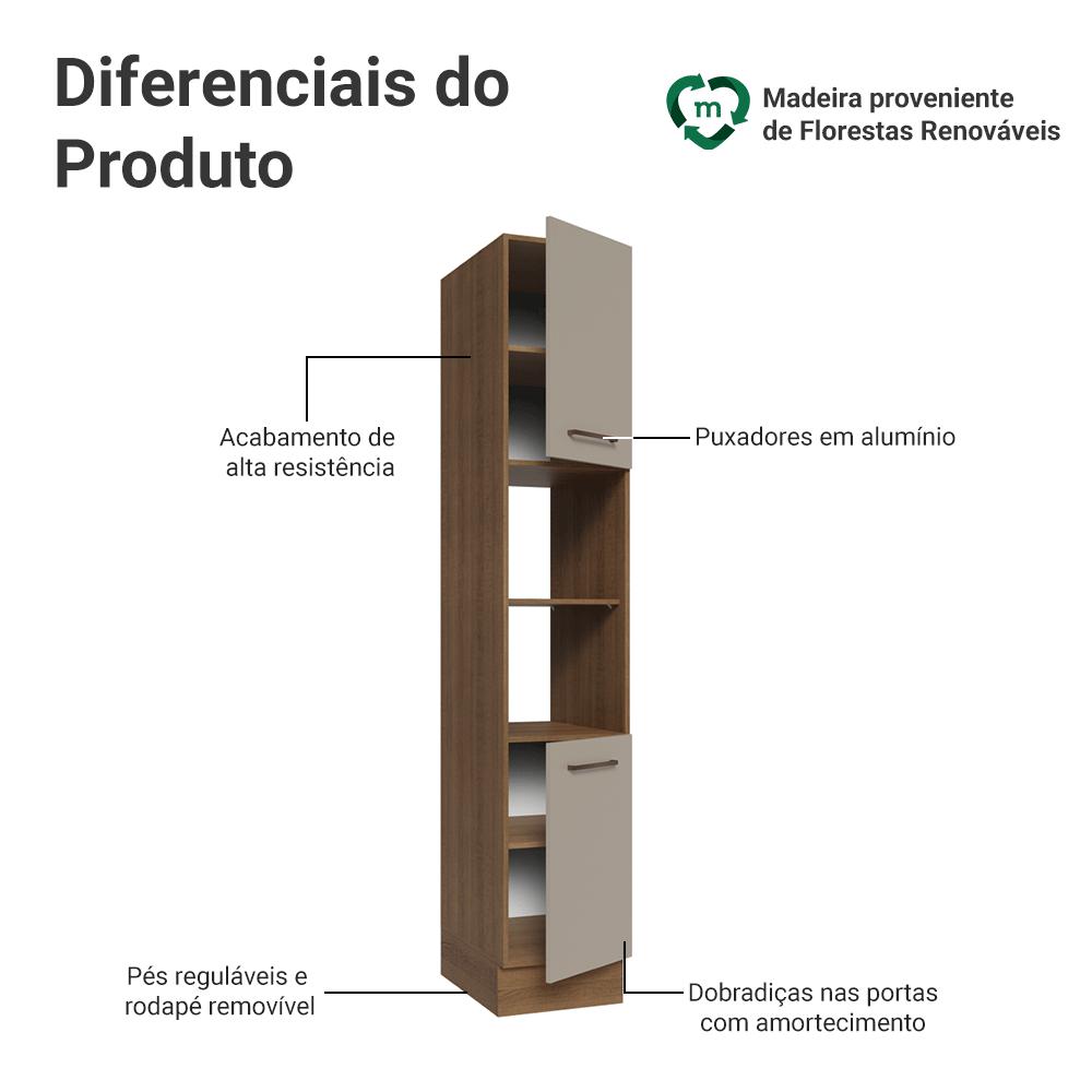 O Paneleiro de 40cm da linha Agata, com duas portas e dois nichos, proporciona praticidade e organização, deixando sua cozinha ainda mais funcional.O acabamento da estrutura é no tom amadeirado Rustic e a porta no tom crema, transmitindo aconchego ao ambiente. O destaque fica por conta do puxador bronze, O design em alça garante praticidade e valoriza ainda mais o móvel.As portas possuem dobradiças com amortecimento, que proporcionam fechamento suave e silencioso. Os pés possuem regulagem de altura e o rodapé removível facilita a limpeza.Medidas totais:- 225 cm de altura- 40 cm de largura- 52 cm de profundidadeInformações técnicas:- Material: MDP- Peso suportado: 95kg- Altura dos pés: reguláveis de 15cm a 20cmO que você recebe:- Um Paneleiro com duas portas e dois nichosCódigo do produto: G264007GAGÉ importante saber:- Imagens meramente ilustrativas, a decoração não acompanha o produto- A Madesa não disponibiliza serviço de montagem- O produto segue com manual de instalação e todas as ferragens necessárias para sua montagemA Madesa possui compromisso com a sustentabilidade. Geramos energia limpa em nossa própria usina, priorizamos fornecedores responsáveis e utilizamos plástico reciclado em nossa produção. Além disso, reinserimos sobras no ciclo de reciclagem e investimos no desenvolvimento de nossos colaboradores e da comunidade.Garantia: Este produto conta com 1 ano de garantia total, sendo 3 meses de garantia legal e 9 meses de garantia contratual. A garantia cobre exclusivamente defeitos de fabricação e vícios ocultos. Não estão cobertos: problemas decorrentes de montagem incorreta, uso inadequado, exposição à umidade, calor ou luz solar direta, modificações no produto ou desgaste natural.