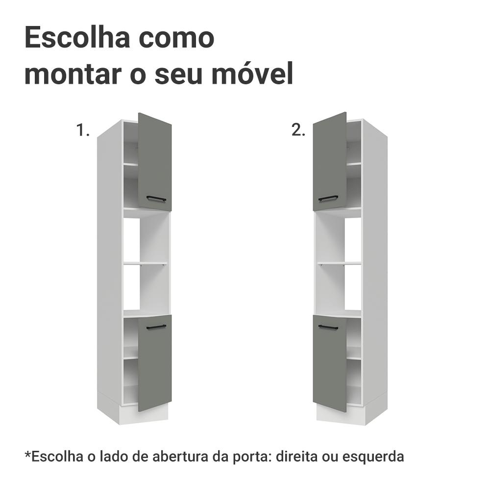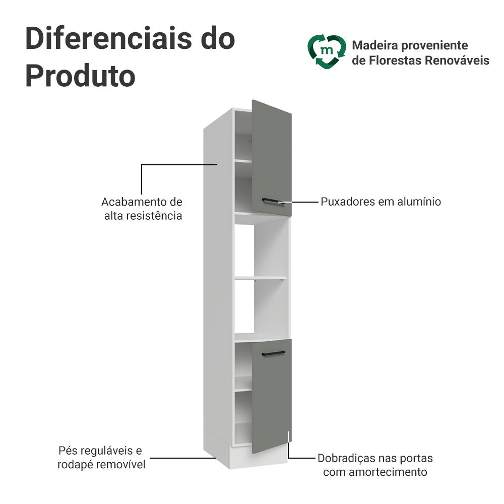 O Paneleiro de 40cm da linha Agata, com duas portas e dois nichos, proporciona praticidade e organização, deixando sua cozinha ainda mais funcional.A combinação da estrutura branca com a porta em cinza cria um visual contemporâneo. Os puxadores pretos reforçam o contraste e adicionam personalidade ao móvel, enquanto o formato em alça deixa o uso mais prático.As portas possuem dobradiças com amortecimento, que proporcionam fechamento suave e silencioso. Os pés possuem regulagem de altura e o rodapé removível facilita a limpeza.Medidas totais:- 225 cm de altura- 40 cm de largura- 52 cm de profundidadeInformações técnicas:- Material: MDP- Peso suportado: 95kg- Altura dos pés: reguláveis de 15cm a 20cmO que você recebe:- Um Paneleiro com duas portas e dois nichosCódigo do produto: G26400F8AGÉ importante saber:- Imagens meramente ilustrativas, a decoração não acompanha o produto- A Madesa não disponibiliza serviço de montagem- O produto segue com manual de instalação e todas as ferragens necessárias para sua montagemA Madesa possui compromisso com a sustentabilidade. Geramos energia limpa em nossa própria usina, priorizamos fornecedores responsáveis e utilizamos plástico reciclado em nossa produção. Além disso, reinserimos sobras no ciclo de reciclagem e investimos no desenvolvimento de nossos colaboradores e da comunidade.Garantia: Este produto conta com 1 ano de garantia total, sendo 3 meses de garantia legal e 9 meses de garantia contratual. A garantia cobre exclusivamente defeitos de fabricação e vícios ocultos. Não estão cobertos: problemas decorrentes de montagem incorreta, uso inadequado, exposição à umidade, calor ou luz solar direta, modificações no produto ou desgaste natural.