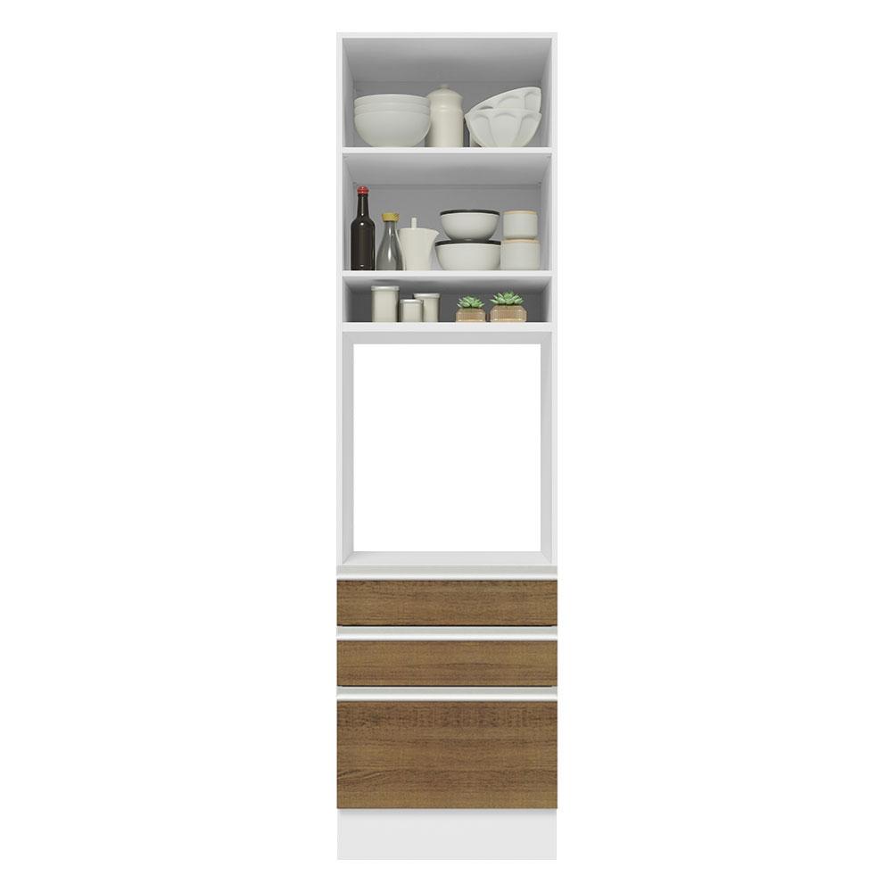 Torre Quente Para Fornos Armário de Cozinha 1 Porta e 3 Gavetas Branco/Rustic Glamy Madesa