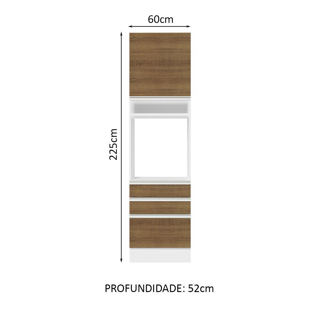 Procurando um módulo de cozinha que ofereça praticidade, qualidade e total aproveitamento de espaço? Conheça a Torre Quente Madesa Glamy de 60 cm.Este armário conta com 3 gavetas muito espaçosas, sendo uma mais profunda, todas com corrediças telescópicas que possibilita abertura total das gavetas. Possui também uma porta convencional que utiliza dobradiças metálicas com amortecimento para o fechamento suave e para o bom aproveitamento interno há uma prateleira ideal para armazenamento de mantimentos.Sua altura é de armário planejado com 225 cm de altura e espaço para forno de 63 cm x 57 cm com abertura para saída do calor. Além disso possui um nicho decorativo para deixar itens do dia a dia mais a mão. Os pés são em PVC com regulagem de altura e rodapé removível de madeira de fácil encaixe. Este módulo precisa ser fixado na parede.O acabamento interno e externo é branco e a porta e as frentes das gavetas são no padrão amadeirado Rustic. A Pintura Poliéster com 7 camadas protetoras aumenta a resistência e durabilidade do móvel. Além disso, é ecológica, isenta de vapores que vão para a atmosfera.A linha de cozinhas Glamy é totalmente modulada. É possível combinar este armário com outros módulos disponíveis na linha. Inclusive combinando diferentes cores, para você criar a cozinha dos seus sonhos.Imagem meramente ilustrativa. Os eletros e a decoração não acompanham o produto.Itens inclusos:- Uma (1) torre quente de 225 cm de altura x 60 cm de largura x 52 cm de profundidade com uma (1) porta, uma (1) prateleira interna, dois (2) nichos externos e três (3) gavetas.Código do produto: G266559BGLObs.: A Madesa não disponibiliza serviço de montagem. O produto segue com manual de instalação e todas as ferragens necessárias para sua montagem.1-O produto é novo ou usado?R.: Todos os produtos da Madesa são novos, enviados da nossa fábrica diretamente para as casas de nossos clientes.2-O produto vem montado? Se não, vocês realizam a montagem?R.: A Madesa não disponibiliza serviço de montagem. Todos os produtos seguem com manual de instalação e as ferragens necessárias. Alguns produtos possuem vídeo explicando o passo a passo da montagem.3-Vocês possuem loja física? Posso retirar meu produto em mãos?R.: Não possuímos loja física, apenas loja virtual. Confira as opções de envio ao colocar o seu CEP.4-Qual é o valor do envio? Posso pagar separadamente?R.: O valor do envio é calculado com base no peso e volume do produto, e no CEP de destino. Você pode calcular o valor e prazo de entrega no simulador.5-A Madesa entrega em todo Brasil? Como é feita a entrega?R.: Sim, entregamos no Brasil inteiro através de transportadoras parceiras.6-O produto acompanha Nota Fiscal?R.: Sim, todos os produtos são entregues com suas respectivas notas fiscais.7-Os produtos possuem garantia?R.: Sim. A Madesa oferece 3 meses de garantia para defeitos de fabricação.A Madesa se dedica à sustentabilidade com várias iniciativas: temos uma usina própria para gerar energia que abastece uma de nossas fábricas. Selecionamos nossos fornecedores, priorizando aqueles que possuem um compromisso com a sustentabilidade e proteção do meio ambiente. Todo o plástico utilizado no setor produtivo é proveniente de reciclagem e as suas sobras são encaminhadas ao fornecedor que os recicla. Também investimos no desenvolvimento contínuo de nossos colaboradores e em ações educacionais que beneficiem a comunidade.