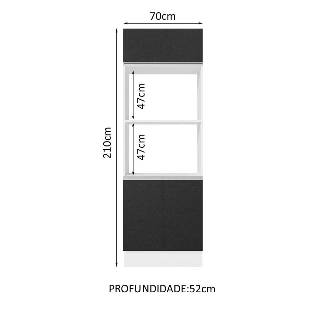 Torre Quente Armário de Cozinha 100% MDF 70 cm para 2 Fornos Branco/Preto Acordes Madesa