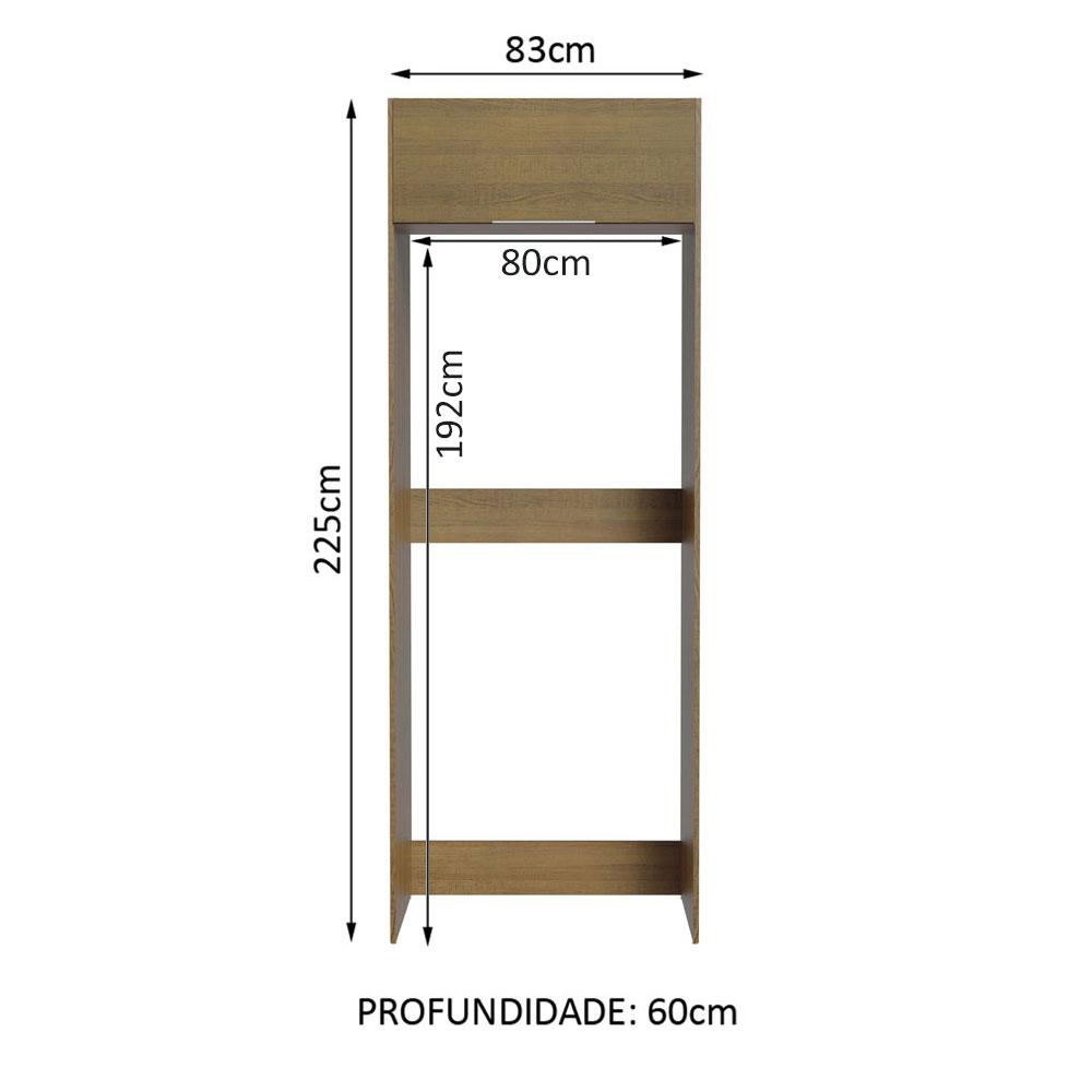 O Porta Geladeira da linha Stella da Madesa possui profundidade de 60 cm e oferece ótimo espaço para a colocação da sua geladeira. Perfeito para auxiliar na organização da cozinha, conta com armário aéreo que ser utilizado para a disposição de louças e utensílios.O móvel é desenvolvido com materiais de qualidade superior, como puxadores slim em alumínio e pistão a gás para abertura e fechamento da porta, diferenciais que deixam o produto muito mais robusto e resistente.O acabamento da estrutura interna e externa é no padrão amadeirado Rustic. É feito em Pintura Poliéster ecológica, com 7 camadas de proteção contra os efeitos da água e do calor.Este módulo pode ser combinado com outros módulos e com todas as cozinhas da linha Stella da Madesa, tanto 52 cm quanto 60 cm de profundidade.(Imagens meramente ilustrativas. O móvel precisa ser fixado na parede.)Itens inclusos:- Um (1) Porta geladeira de 225 cm de altura x 83 cm de largura x 60 cm de profundidade com uma (1) porta basculante e espaço para a colocação de geladeira.Código do produto: G270805ZTEObs.: A Madesa não disponibiliza serviço de montagem. O produto segue com manual e todas as ferragens necessárias para a instalação.- O Armário Aéreo possui 31 cm de profundidade.1 – O produto é novo ou usado?R.: Todos os produtos da Madesa são novos, enviados da nossa fábrica diretamente para as casas de nossos clientes.2 – O produto vem montado? Se não, vocês realizam a montagem?R.: A Madesa não disponibiliza serviço de montagem. Todos os produtos seguem com manual de instalação e as ferragens necessárias. Alguns produtos possuem vídeo explicando o passo a passo da montagem.3 – Vocês possuem loja física? Posso retirar meu produto em mãos?R.: Não possuímos loja física, apenas loja virtual. Confira as opções de envio ao colocar o seu CEP.4 – Qual é o valor do envio? Posso pagar separadamente?R.: O valor do envio é calculado com base no peso e volume do produto, e no CEP de destino. Você pode calcular o valor e prazo de entrega no simulador.5 – A Madesa entrega em todo Brasil? Como é feita a entrega?R.: Sim, entregamos no Brasil inteiro através de transportadoras parceiras.6 – O produto acompanha Nota Fiscal?R.: Sim, todos os produtos são entregues com suas respectivas notas fiscais.7 – Os produtos possuem garantia?R.: Sim. A Madesa oferece 3 meses de garantia para defeitos de fabricação.A Madesa se dedica à sustentabilidade com várias iniciativas: temos uma usina própria para gerar energia que abastece uma de nossas fábricas. Selecionamos nossos fornecedores, priorizando aqueles que possuem um compromisso com a sustentabilidade e proteção do meio ambiente. Todo o plástico utilizado no setor produtivo é proveniente de reciclagem e as suas sobras são encaminhadas ao fornecedor que os recicla. Também investimos no desenvolvimento contínuo de nossos colaboradores e em ações educacionais que beneficiem a comunidade.