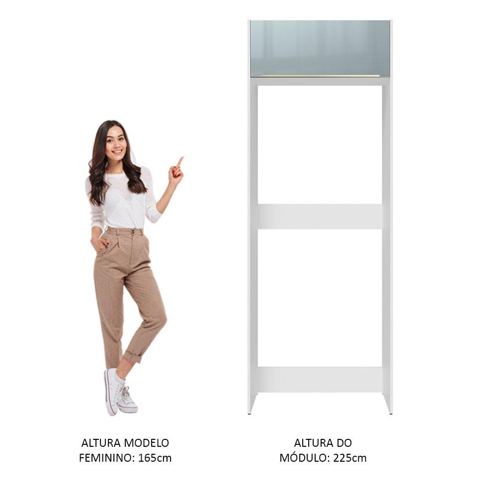 O Porta Geladeira da linha Lux da Madesa é ideal para organizar a sua cozinha. Com profundidade de 60 cm, oferece grande espaço para a colocação da geladeira. Além disso, o armário aéreo pode ser utilizado para organizar louças e utensílios.Um diferencial de destaque é a porta do aéreo, que recebe um lindo vidro cinza aplicado, detalhe que deixa o ambiente muito mais sofisticado. Além disso, o móvel é desenvolvido com materiais de alta qualidade, como puxadores em alumínio e dobradiças metálicas, diferenciais que prolongam a vida útil do produto.O acabamento da estrutura interna e externa é Branco. A porta do aéreo é cinza. É feito em Pintura Poliéster ecológica, com 7 camadas de proteção contra os efeitos da água e do calor.Este módulo pode ser combinado com outros módulos e com todas as cozinhas da linha Lux da Madesa.Itens inclusos:- Um (1) porta geladeira de 225 cm de altura x 83 cm de largura x 60 cm de profundidade com uma (1) porta basculante e espaço para a colocação de geladeira.Código do produto: G270809RLXObs.:- Imagens meramente ilustrativas- O móvel precisa ser fixado na parede- A Madesa não disponibiliza serviço de montagem- O produto segue com manual e todas as ferragens necessárias para a instalação- O Armário Aéreo possui 31 cm de profundidade.1 – O produto é novo ou usado?R.: Todos os produtos da Madesa são novos, enviados da nossa fábrica diretamente para as casas de nossos clientes.2 – O produto vem montado? Se não, vocês realizam a montagem?R.: A Madesa não disponibiliza serviço de montagem. Todos os produtos seguem com manual de instalação e as ferragens necessárias. Alguns produtos possuem vídeo explicando o passo a passo da montagem.3 – Vocês possuem loja física? Posso retirar meu produto em mãos?R.: Não possuímos loja física, apenas loja virtual. Confira as opções de envio ao colocar o seu CEP.4 – Qual é o valor do envio? Posso pagar separadamente?R.: O valor do envio é calculado com base no peso e volume do produto, e no CEP de destino. Você pode calcular o valor e prazo de entrega no simulador.5 – A Madesa entrega em todo Brasil? Como é feita a entrega?R.: Sim, entregamos no Brasil inteiro através de transportadoras parceiras.6 – O produto acompanha Nota Fiscal?R.: Sim, todos os produtos são entregues com suas respectivas notas fiscais.7 – Os produtos possuem garantia?R.: Sim. A Madesa oferece 3 meses de garantia para defeitos de fabricação.A Madesa se dedica à sustentabilidade com várias iniciativas: temos uma usina própria para gerar energia que abastece uma de nossas fábricas. Selecionamos nossos fornecedores, priorizando aqueles que possuem um compromisso com a sustentabilidade e proteção do meio ambiente. Todo o plástico utilizado no setor produtivo é proveniente de reciclagem e as suas sobras são encaminhadas ao fornecedor que os recicla. Também investimos no desenvolvimento contínuo de nossos colaboradores e em ações educacionais que beneficiem a comunidade.
