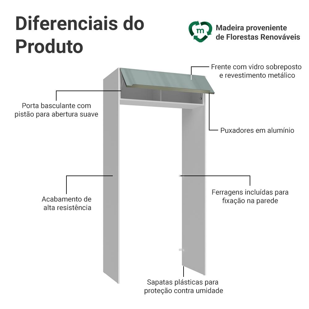 O armário porta-geladeira da linha Lux da Madesa foi desenvolvido para quem busca sofisticação e funcionalidade para a sua cozinha.Este móvel foi projetado para integrar a geladeira ao ambiente de maneira eficiente, aproveitando melhor o espaço e trazendo mais organização para a cozinha. Um dos grandes diferenciais da linha são os puxadores reforçados com acabamento em aço escovado na cor champagne.A porta basculante, equipada com pistão a gás, mantém-se suspensa quando aberta, oferecendo mais segurança e praticidade no uso diário. A combinação de branco com cinza, com portas em vidro sobreposto, cria um visual moderno.Medidas:- 225cm de altura- 103cm de largura- 29cm de profundidade no aéreo e 60cm no porta-geladeiraInformações técnicas:- Material: MDP- Peso total suportado: 5 kgO que você recebe:- Um Armário Porta-Geladeira com Aéreo de porta basculanteCódigo do produto: G271019RLXÉ importante saber:- Imagens meramente ilustrativas, a decoração não acompanha o produto.- A Madesa não oferece serviço de montagem.- O produto segue com manual e todas as ferragens necessárias.A Madesa possui compromisso com a sustentabilidade. Geramos energia limpa em nossa própria usina, priorizamos fornecedores responsáveis e utilizamos plástico reciclado em nossa produção. Além disso, reinserimos sobras no ciclo de reciclagem e investimos no desenvolvimento de nossos colaboradores e da comunidade.Garantia: Este produto conta com 1 ano de garantia total, sendo 3 meses de garantia legal e 9 meses de garantia contratual. A garantia cobre exclusivamente defeitos de fabricação e vícios ocultos. Não estão cobertos: problemas decorrentes de montagem incorreta, uso inadequado, exposição à umidade, calor ou luz solar direta, modificações no produto ou desgaste natural.