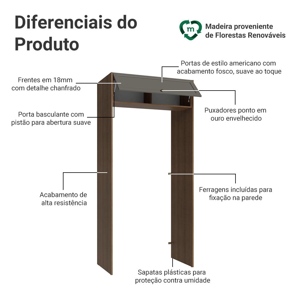 Aproveite ao máximo o espaço da sua cozinha com o porta-geladeira da linha Vik da Madesa.Inspirada no estilo americano, as frentes das portas contam com molduras que trazem profundidade ao design e realçam o acabamento, conferindo um visual sofisticado. Os puxadores ponto em ouro envelhecido adicionam charme, completando o design da linha Vik.O acabamento do móvel conta com textura suave ao toque, que valoriza o visual sofisticado da linha. A união do amadeirado Rustic com cinza resulta em um visual sofisticado, ideal para quem busca elegância. A porta basculante com sistema de pistão a gás mantém a porta suspensa quando aberta, proporcionando mais praticidade e segurança para o uso diário.Medidas:- 225cm de altura- 103cm de largura- 29cm de profundidade no aéreo e 60cm no porta-geladeiraInformações técnicas:- Material: MDP- Peso total suportado: 5 kgO que você recebe:- Um Armário Porta-Geladeira com Aéreo de porta basculanteCódigo do produto: G27101F9VKÉ importante saber:- Imagens meramente ilustrativas, a decoração não acompanha o produto.- A Madesa não oferece serviço de montagem.- O produto segue com manual e todas as ferragens necessárias.A Madesa possui compromisso com a sustentabilidade. Geramos energia limpa em nossa própria usina, priorizamos fornecedores responsáveis e utilizamos plástico reciclado em nossa produção. Além disso, reinserimos sobras no ciclo de reciclagem e investimos no desenvolvimento de nossos colaboradores e da comunidade.Garantia: Este produto conta com 1 ano de garantia total, sendo 3 meses de garantia legal e 9 meses de garantia contratual. A garantia cobre exclusivamente defeitos de fabricação e vícios ocultos. Não estão cobertos: problemas decorrentes de montagem incorreta, uso inadequado, exposição à umidade, calor ou luz solar direta, modificações no produto ou desgaste natural.