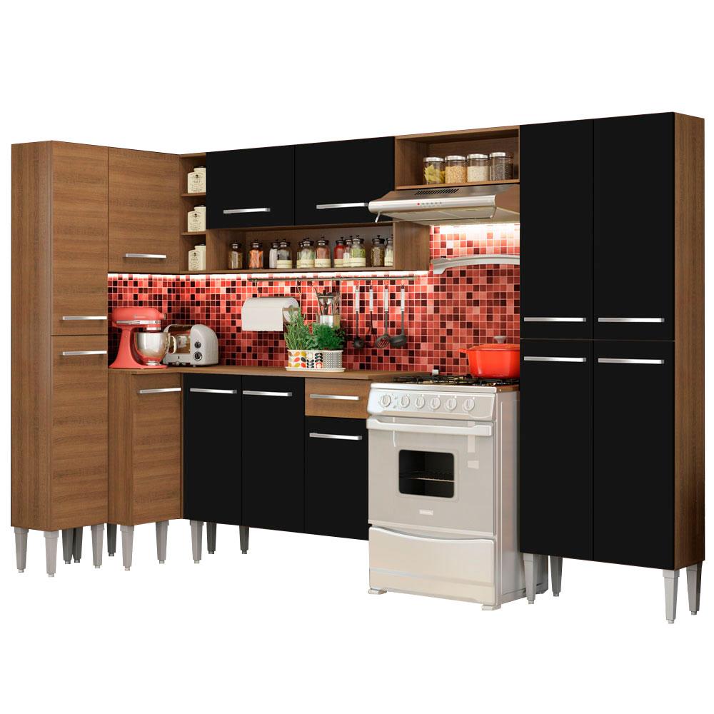 Cozinha Completa de Canto Reto Madesa Emilly Love com Armário e Balcão 13 Portas 1 Gaveta