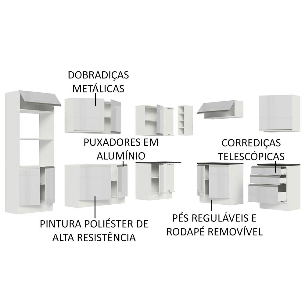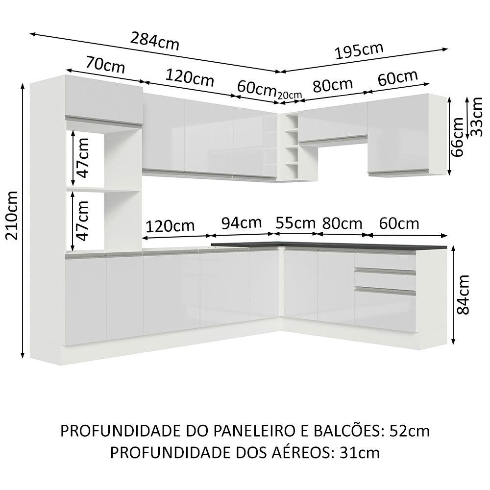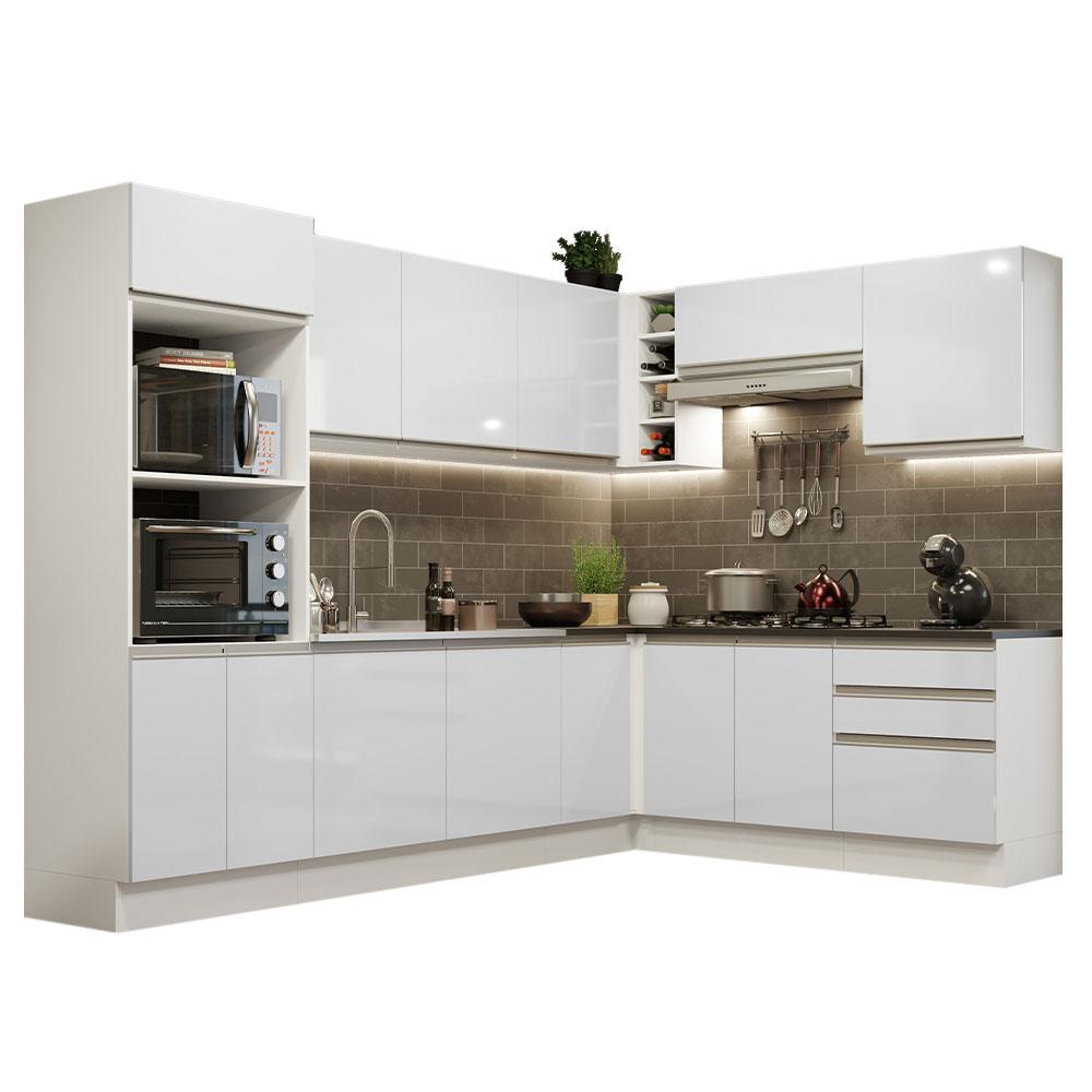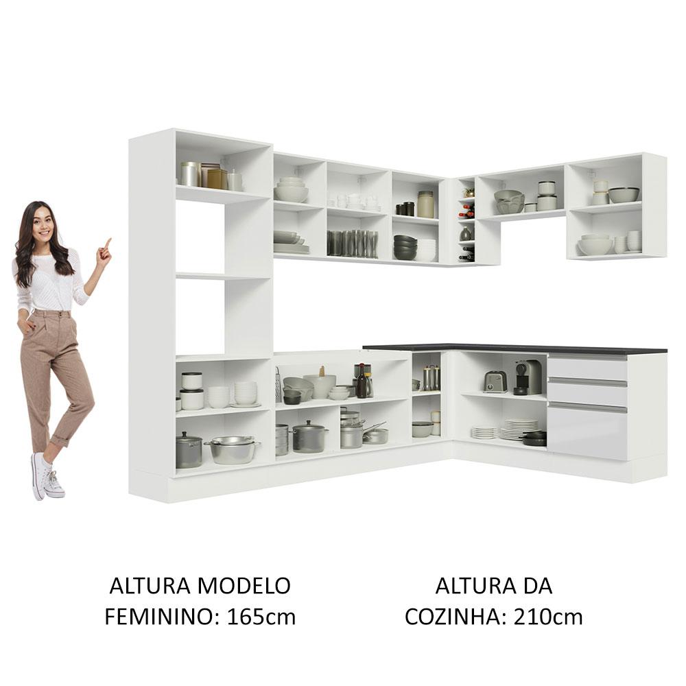 Cozinha Completa de Canto 100% MDF Madesa Acordes 479003 Armário e Balcão - Frentes Branco Brilho