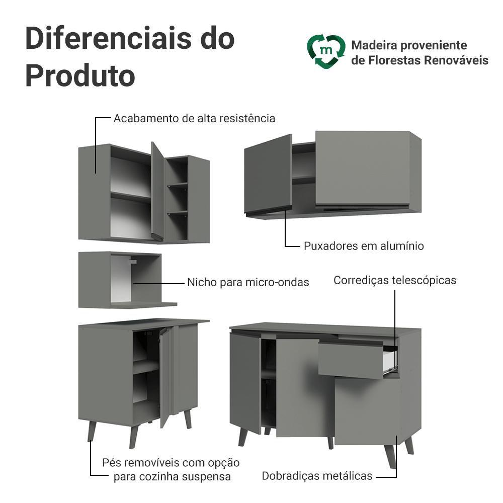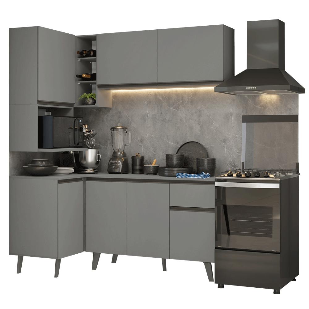 Armário de Cozinha Completa de Canto 265 cm Cinza Nice Madesa 05
