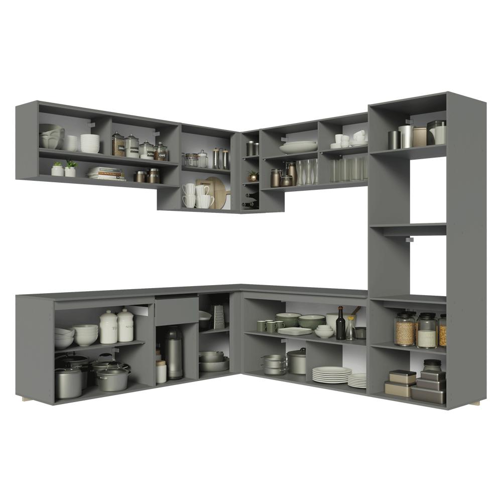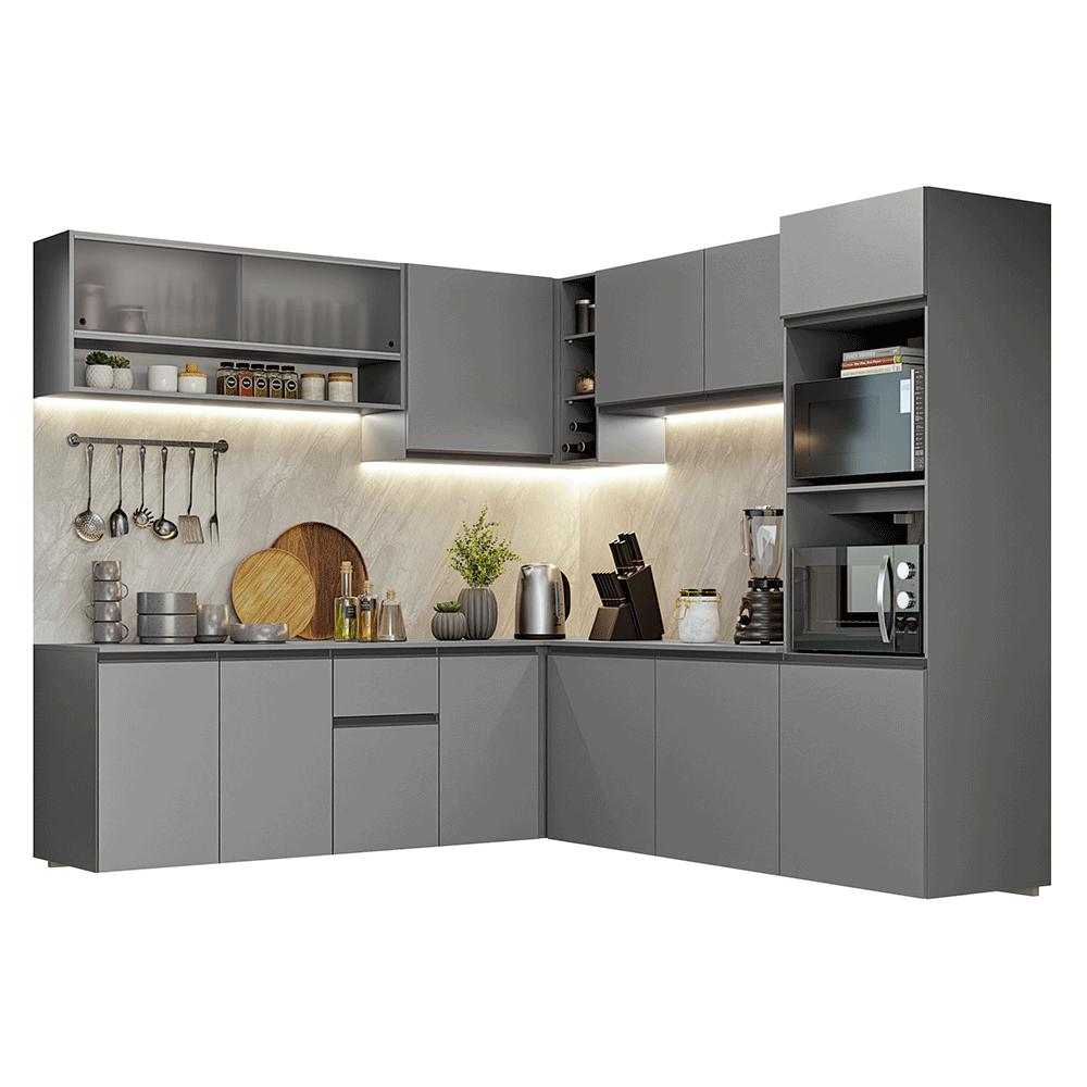Armário de Cozinha Completa de Canto 445cm Suspensa Cinza Nice Madesa 03