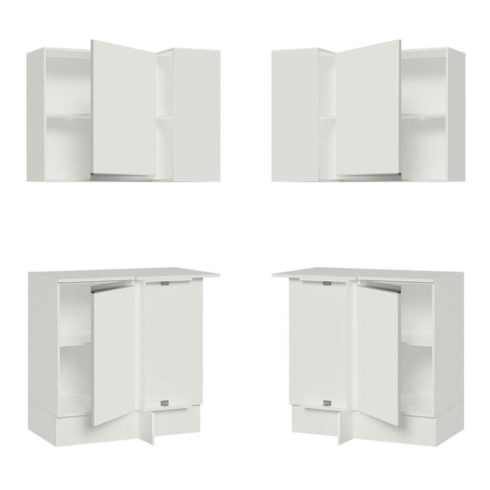 Kit Armário de Cozinha de Canto 100% MDF 2 Portas e Nicho Branco Smart Madesa