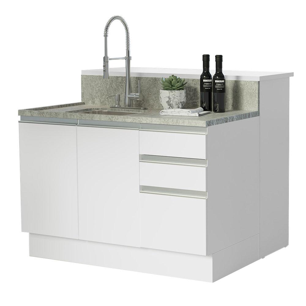 Ilha de Cozinha com Bancada e Balcão 120 cm Branco Glamy Madesa