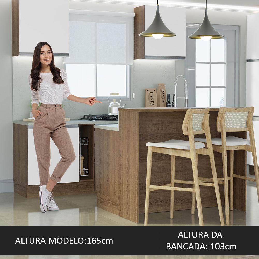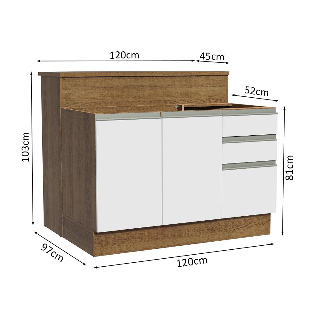 Ilha de Cozinha com Bancada e Balcão 120 cm Rustic/Branco Glamy Madesa