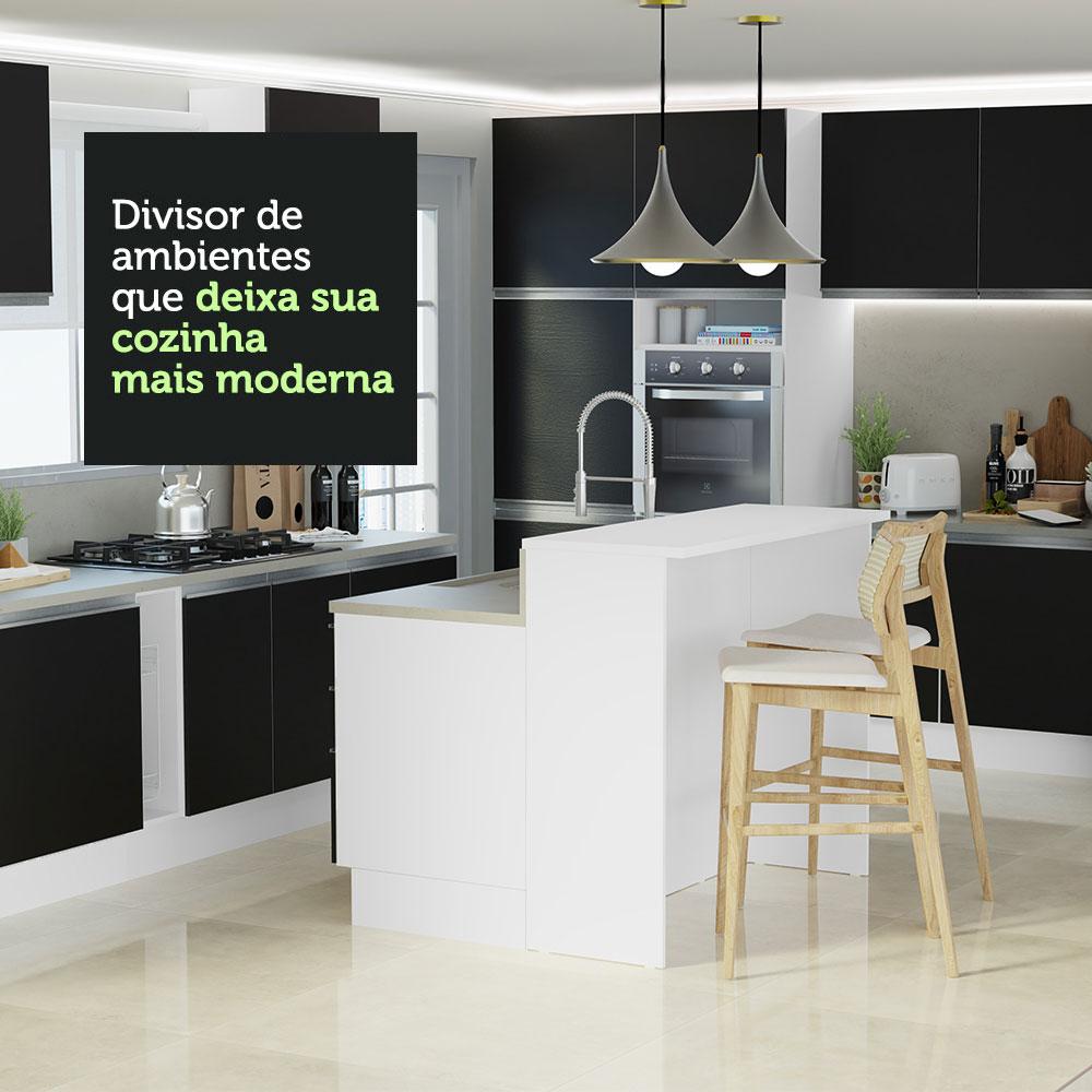 Ilha de Cozinha com Bancada e Balcão 120 cm Branco/Preto Glamy Madesa