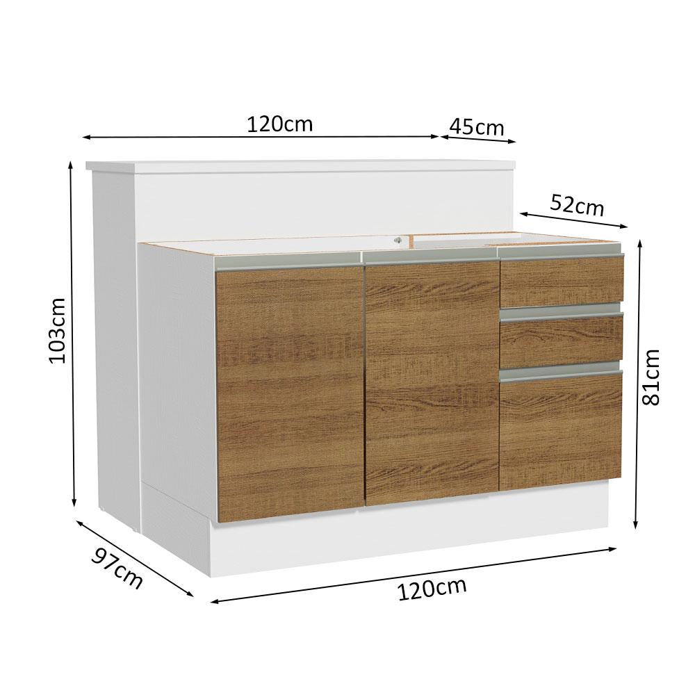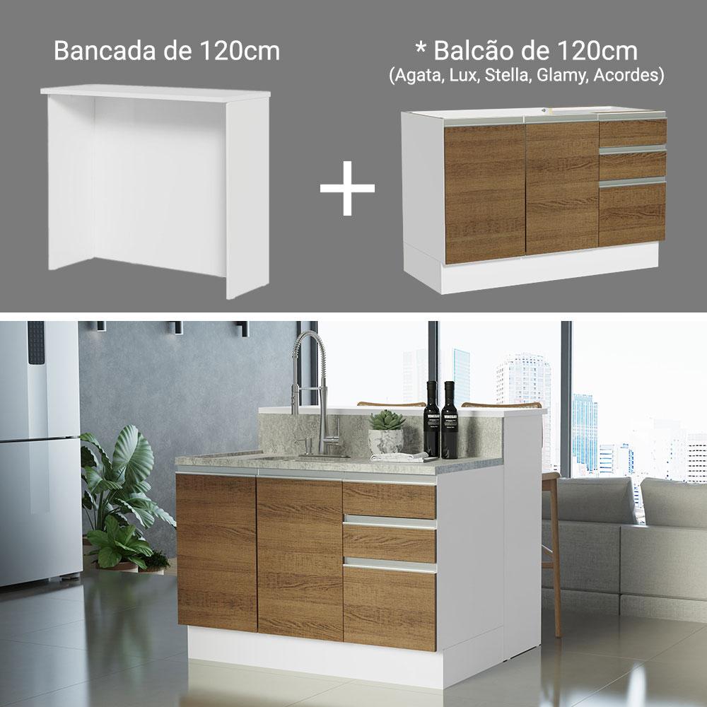 Ilha de Cozinha com Bancada e Balcão 120 cm Branco/Rustic Glamy Madesa