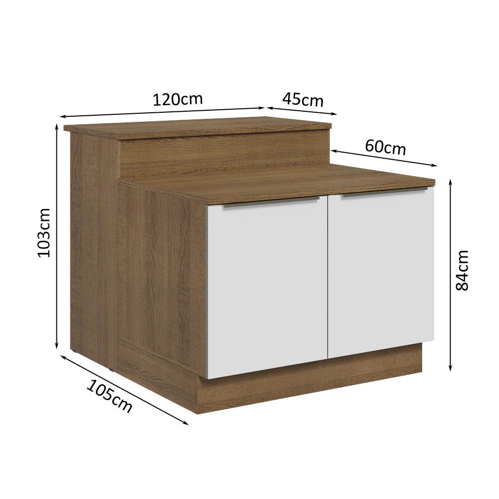Ilha de Cozinha com Bancada e Balcão 120 cm Rustic/Branco Lux Madesa