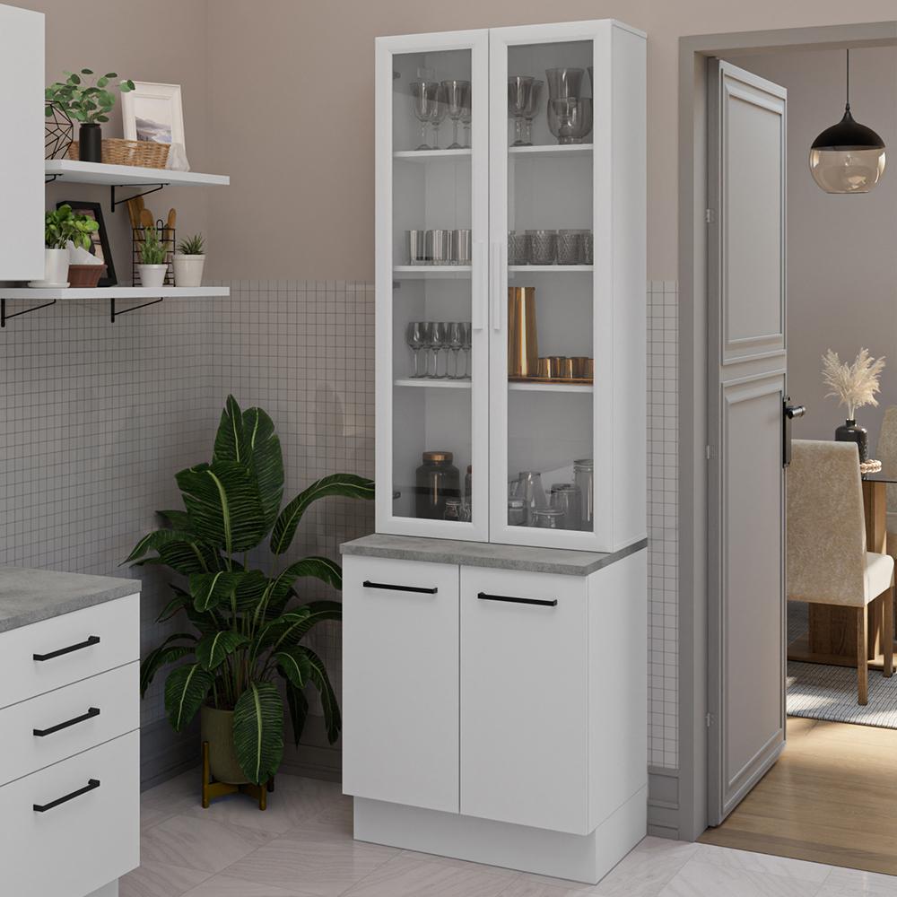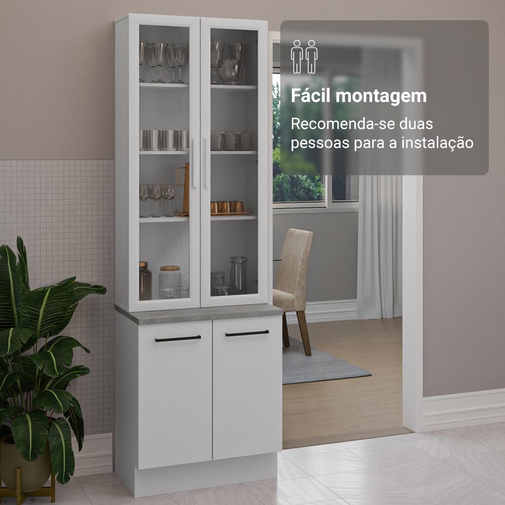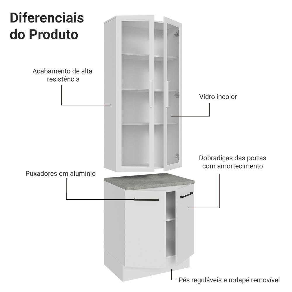 Kit Balcão + Cristaleira 70cm Branco Agata Madesa 01