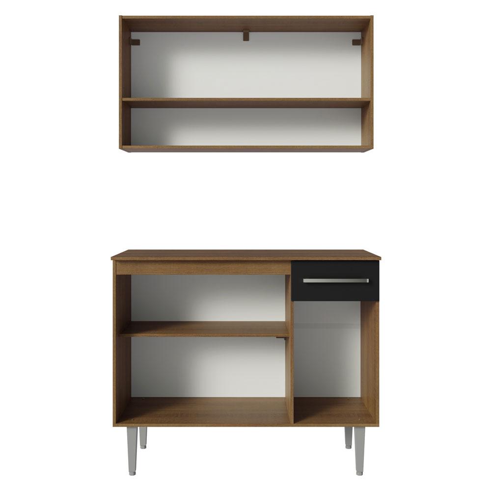 Armário de Cozinha Compacta 105cm Rustic/Preto Emilly Madesa 03