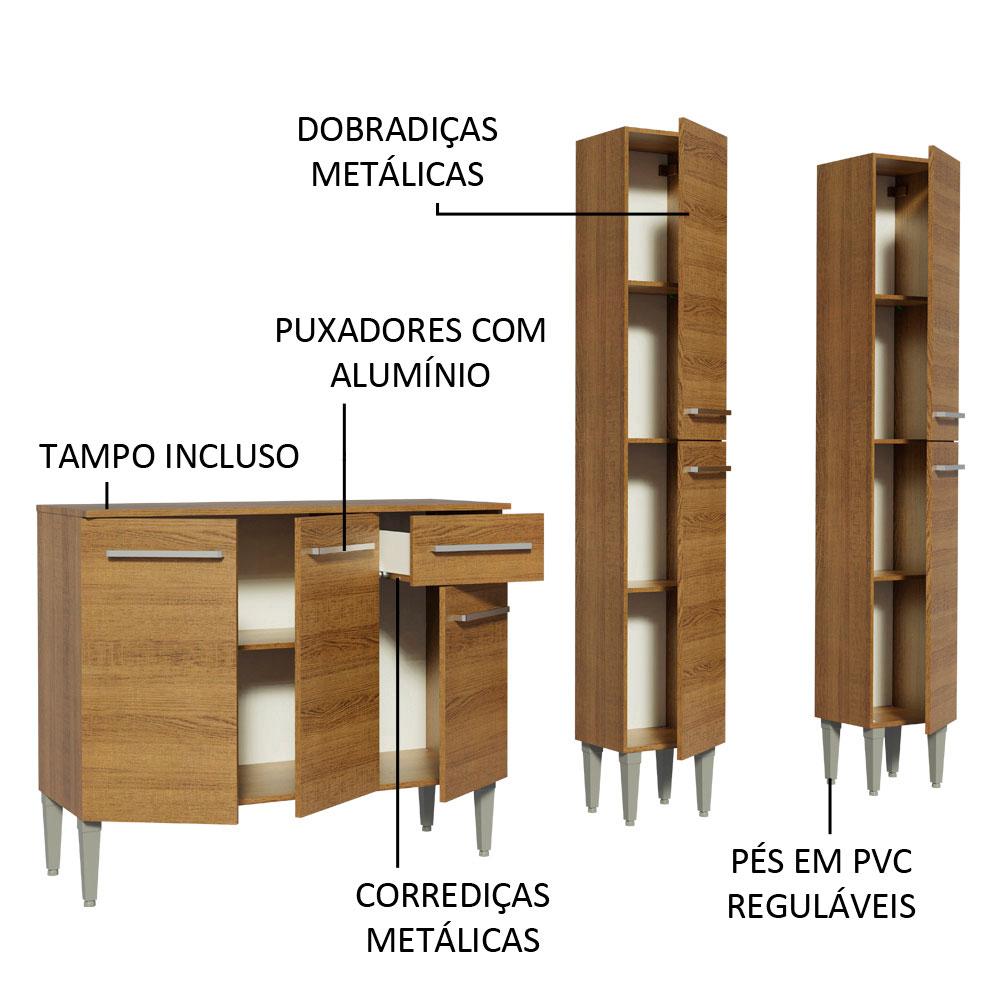 Cozinha Compacta Madesa Emilly Front com Balcão e Paneleiro Rustic