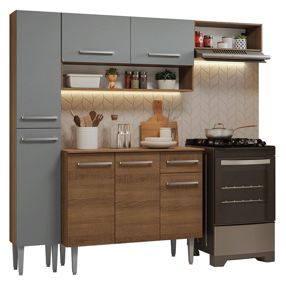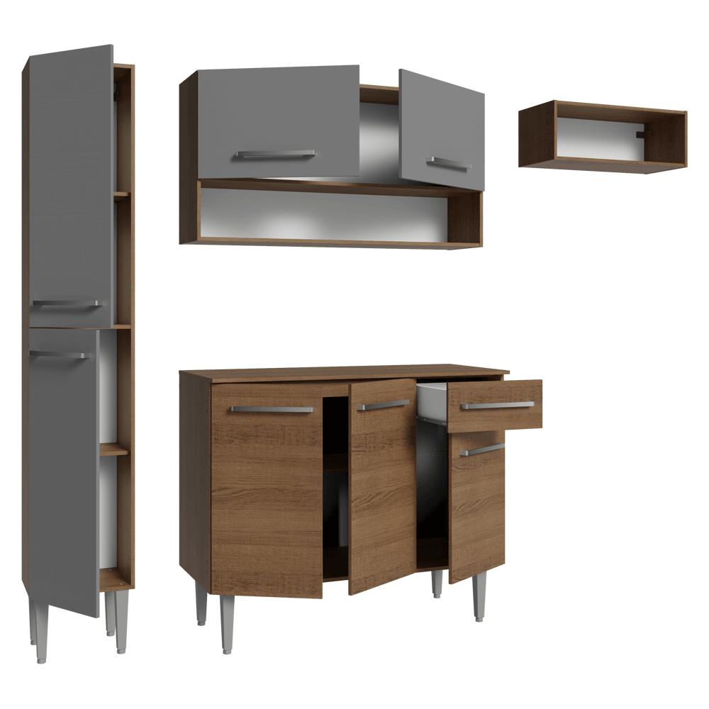 Armário de Cozinha Completa 197 cm Rustic/Cinza Emilly Madesa 02