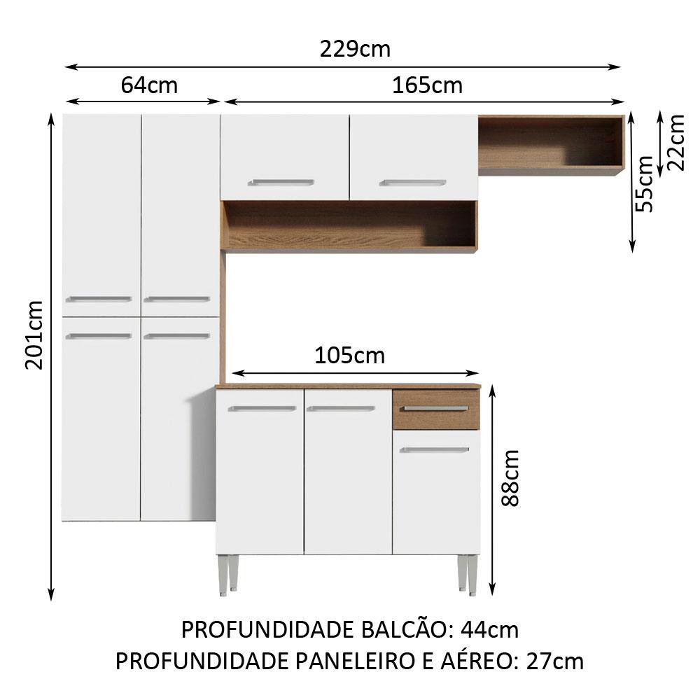Armário de Cozinha Compacta 229cm Rustic/Branco Emilly Fit Madesa 03