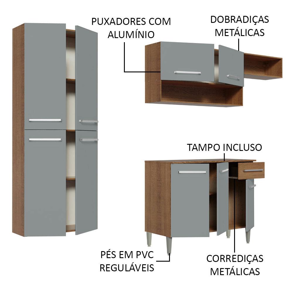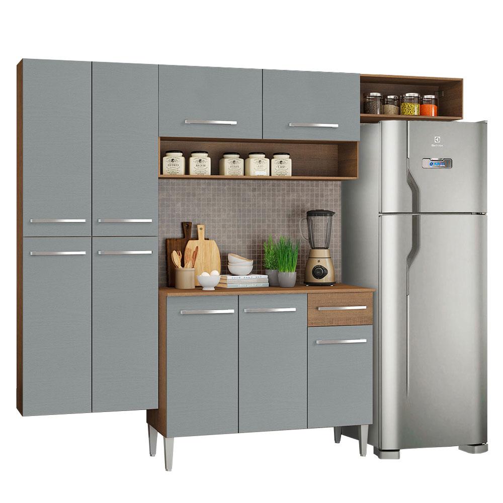 Armário de Cozinha Completa 229cm Rustic/Cinza Emilly Fit Madesa