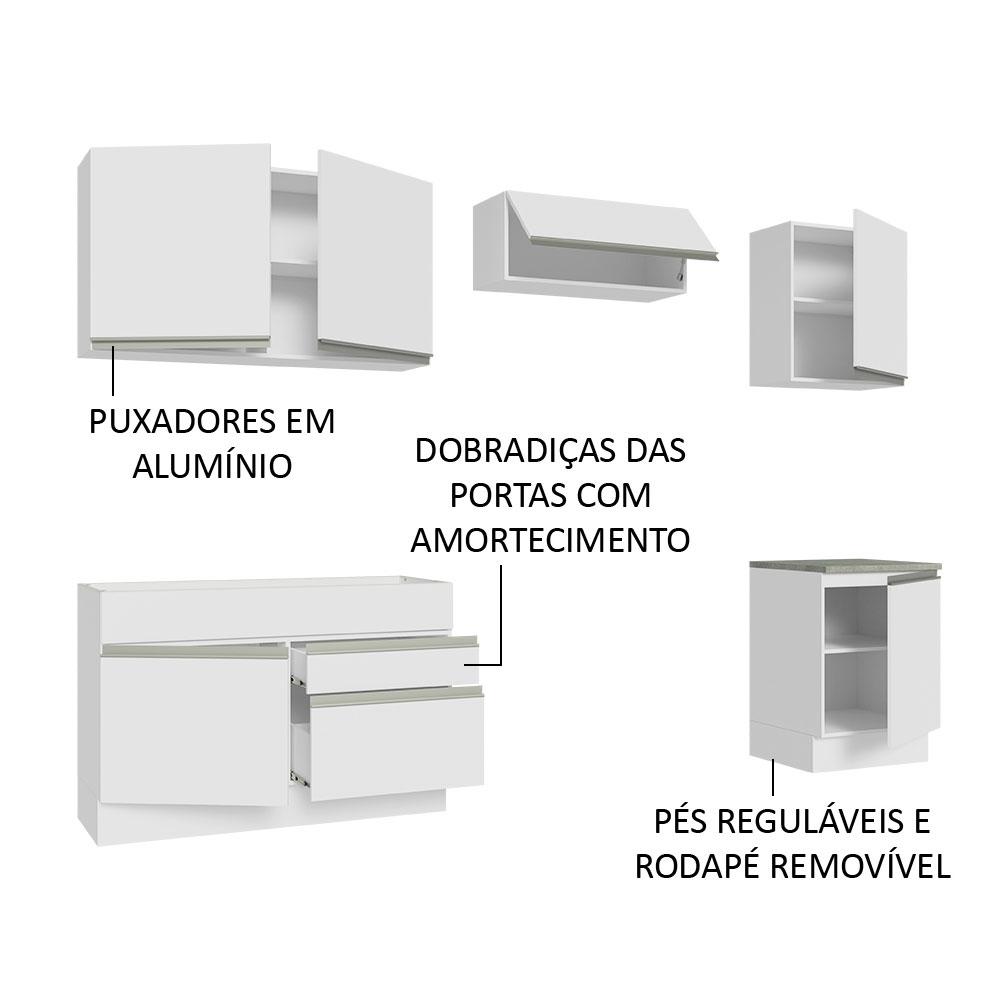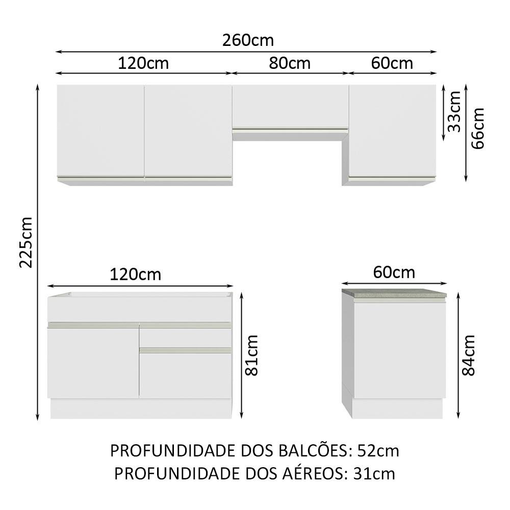 Armário de Cozinha Completa 260cm Branco Glamy Madesa 04