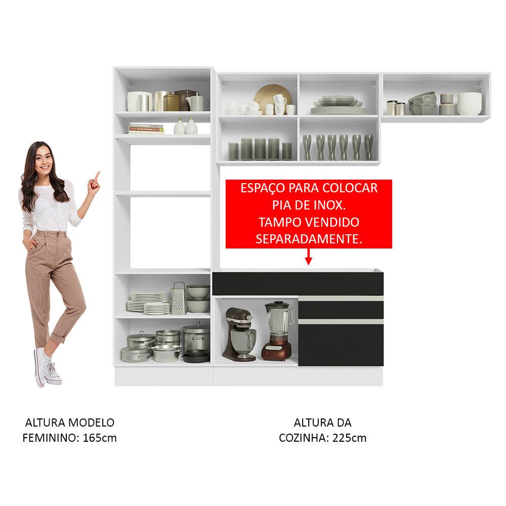 Armário de Cozinha Completa 270cm Branco/Preto Glamy Madesa 15