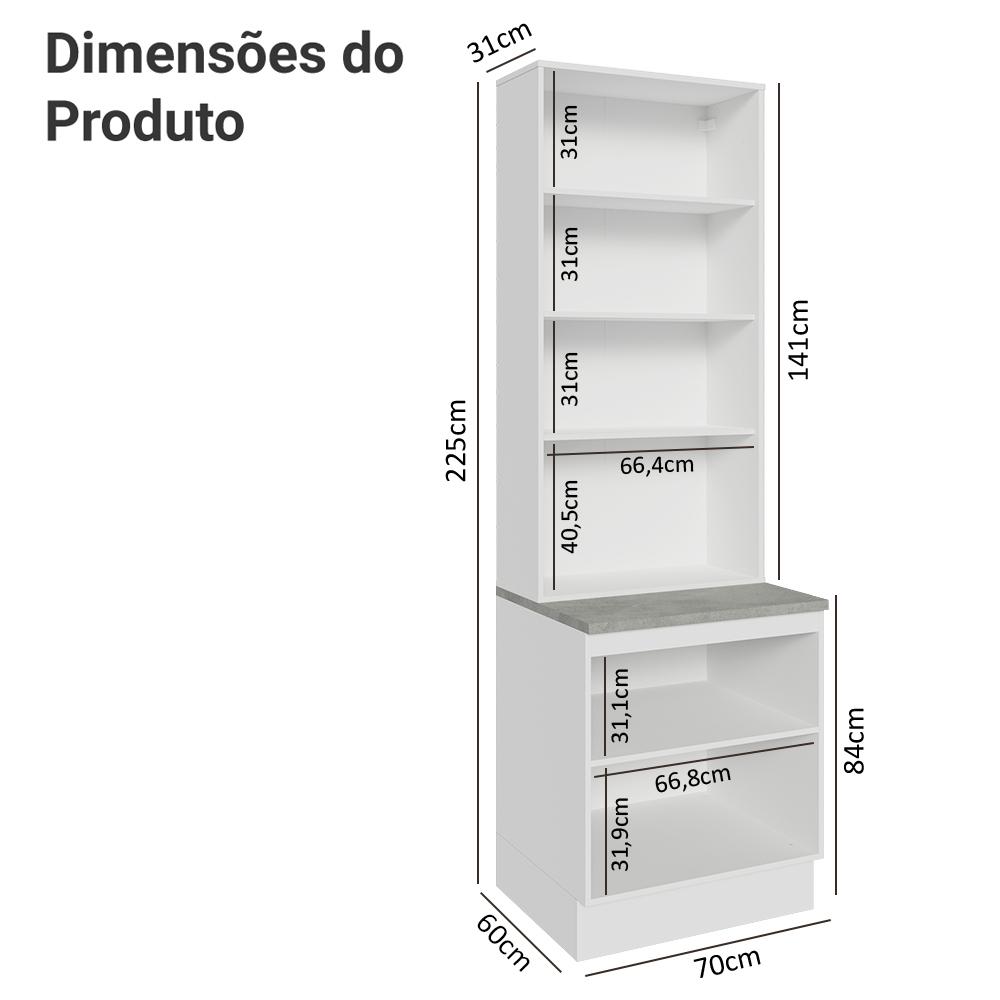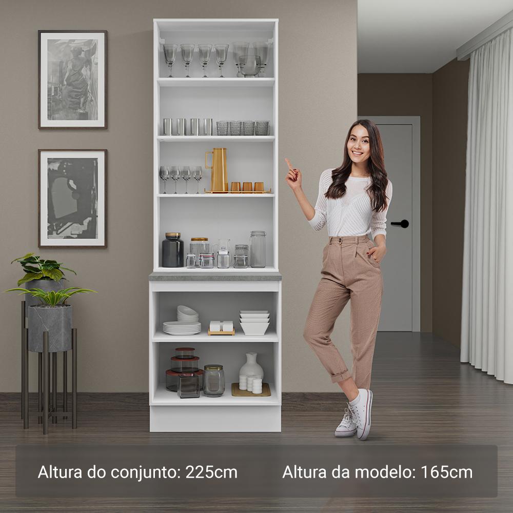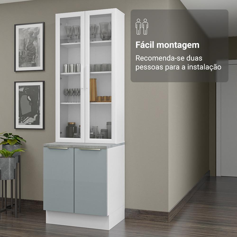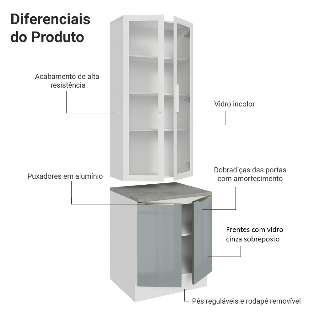 Kit Balcão + Cristaleira 70cm Branco/Cinza Lux Madesa 01