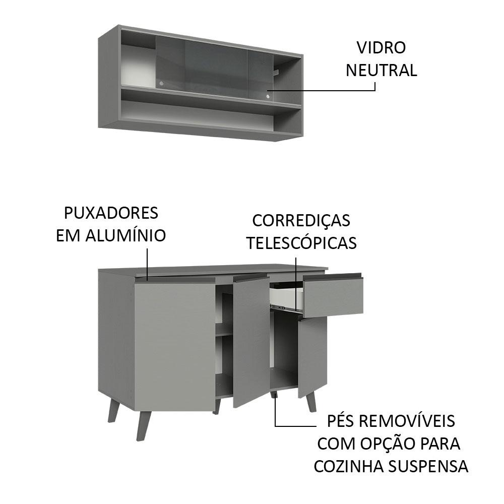 Armário de Cozinha Compacta 120cm Cinza Nice Madesa 01
