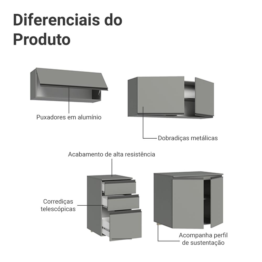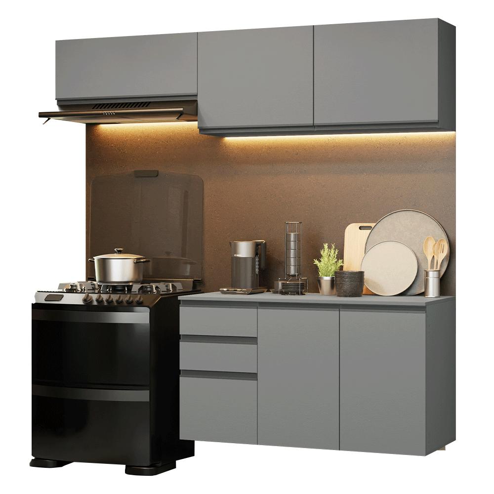 Armário de Cozinha Compacta Suspenso 200cm Cinza Nice Madesa 05