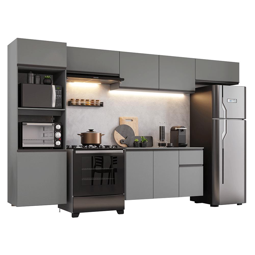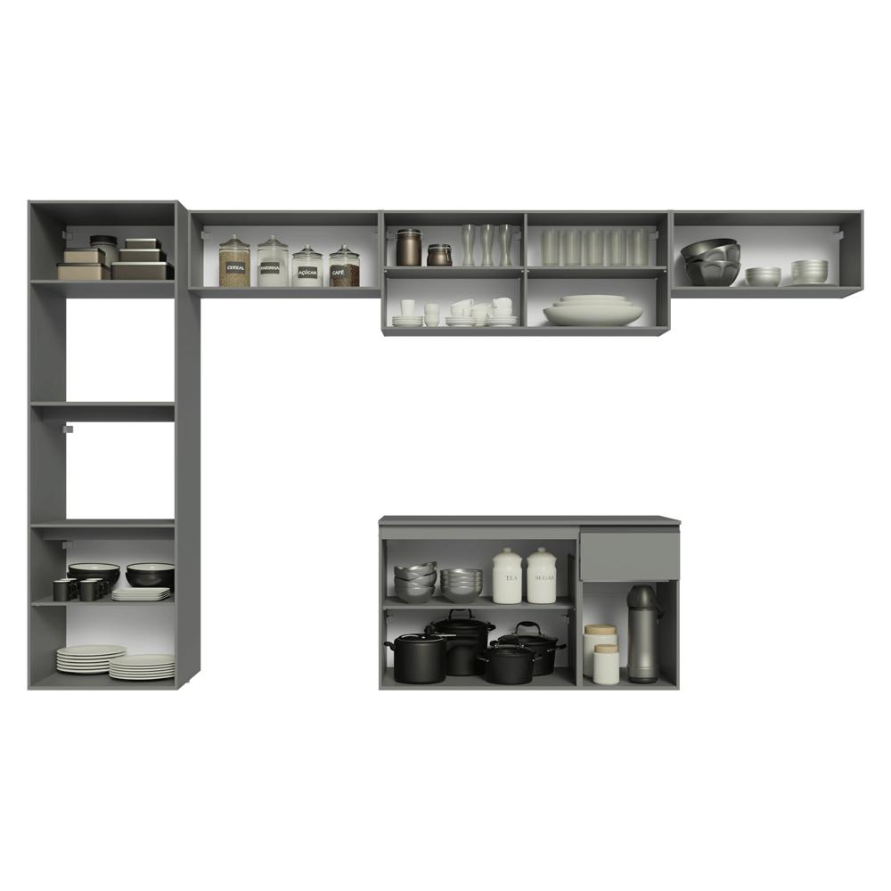 Armário de Cozinha Completa 340cm Suspensa Cinza Nice Madesa 02